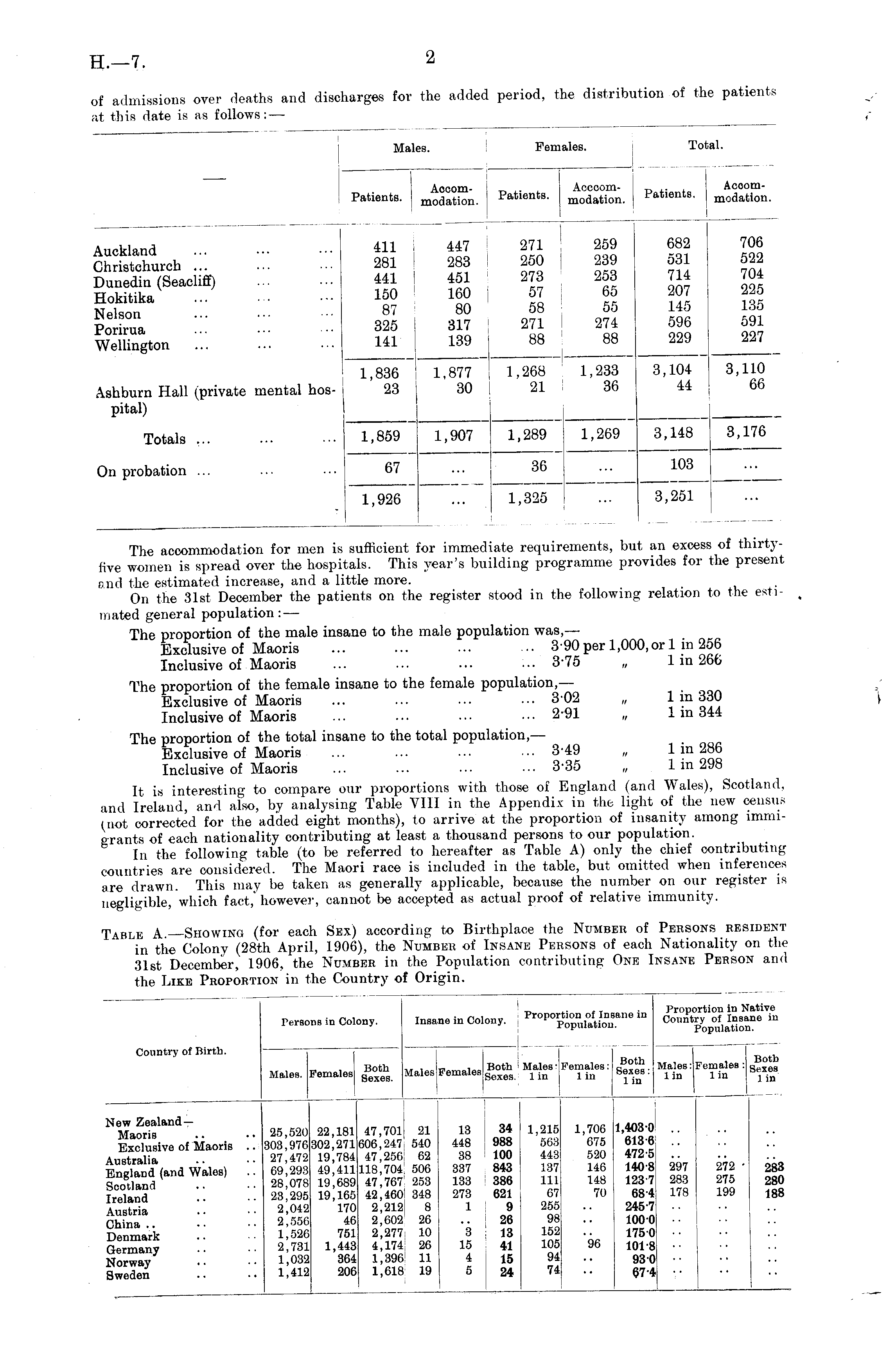 Males. Pe: lales. ti. _ . AocomPatients. mo a a tion. Acccommodation. Patients. Accommodation. Patients. Auckland Christchurch ... Dunedin (Seacliff) Hokitika Nelson Porirua Wellington 411 281 441 150 87 325 141 447 283 451 160 80 317 139 271 250 273 57 58 271 88 259 239 253 65 55 274 88 682 531 714 207 145 596 229 706 522 704 225 135 591 227 Ashburn Hall (private mental hospital) 1,836 23 1,877 30 1,268 21 1,233 36 3,104 44 3,110 66 Totals ... 1,859 1,907 1,289 1,269 3,148 3,176 On probation ... 67 36 103 1,926 1,325 3,251