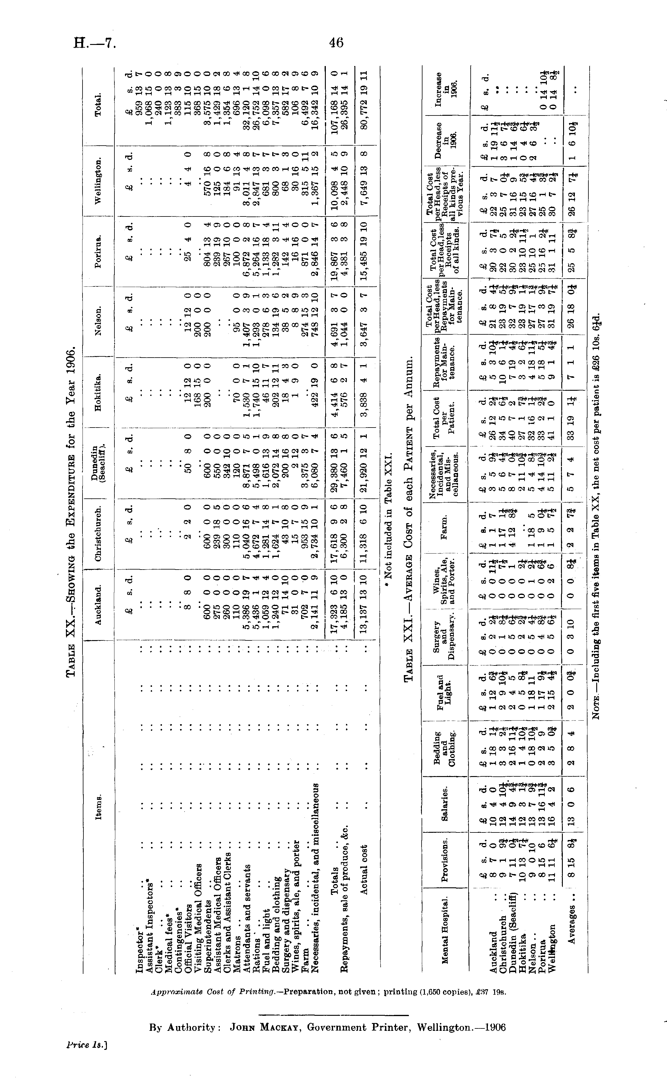 Table XX.—Showing the Expenditure for the Year 1906.