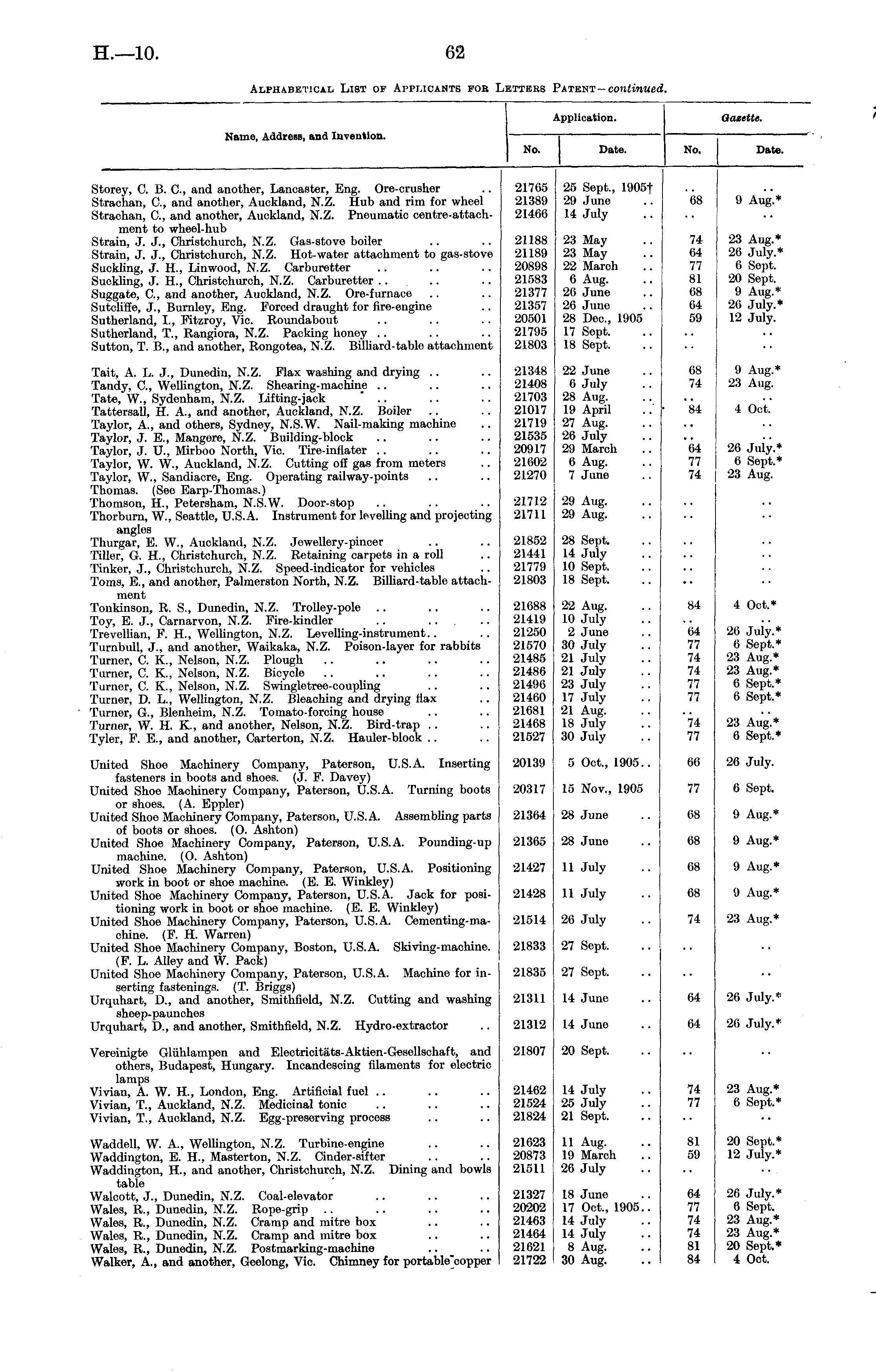 Alphabetical List of Applicants for Letters Patent— continued.
