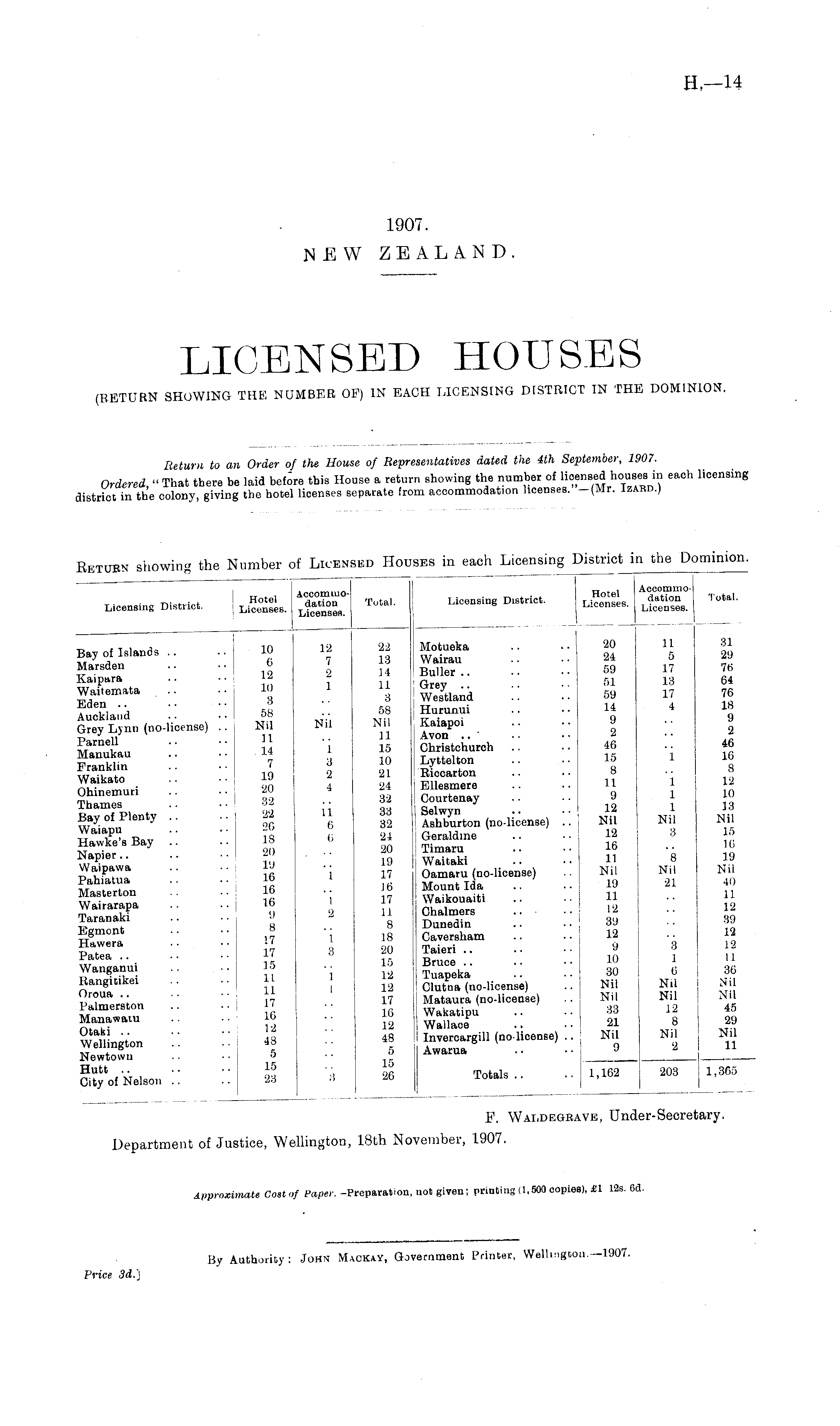 F. Waldegeave, Under-Secretary. Department of Justice, Wellington, 18th November, 1907.