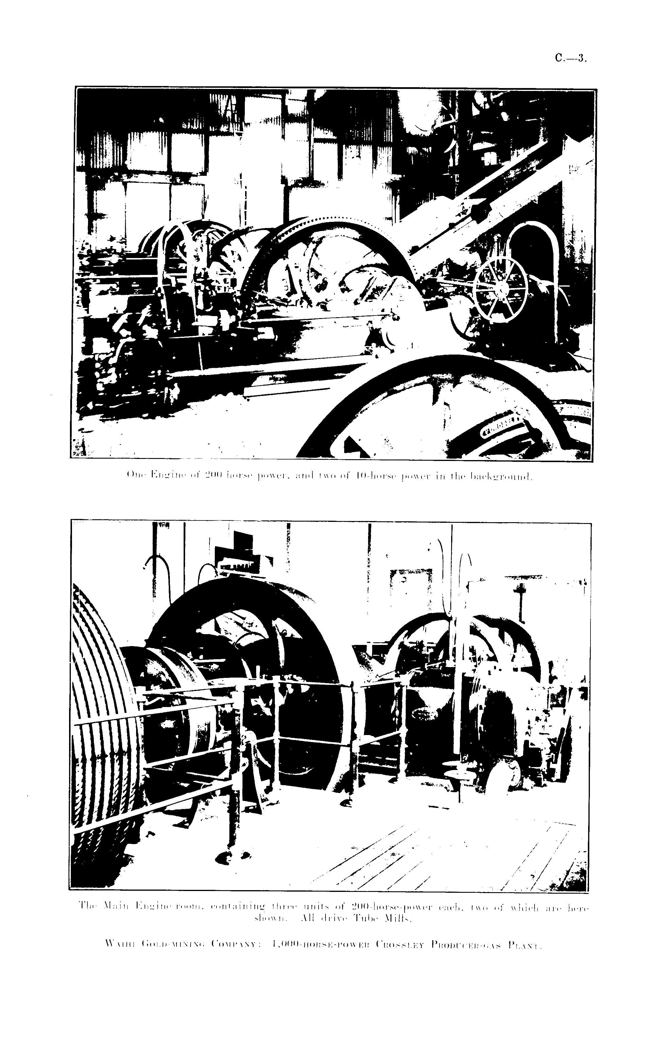 The Main Engine-room, containing three units of 200-horse-power each, two of which are here shown All drive Tube Mills. Waihi Gold-mining Company: 1,000-horse-power Crossley Producer-gas Plant.