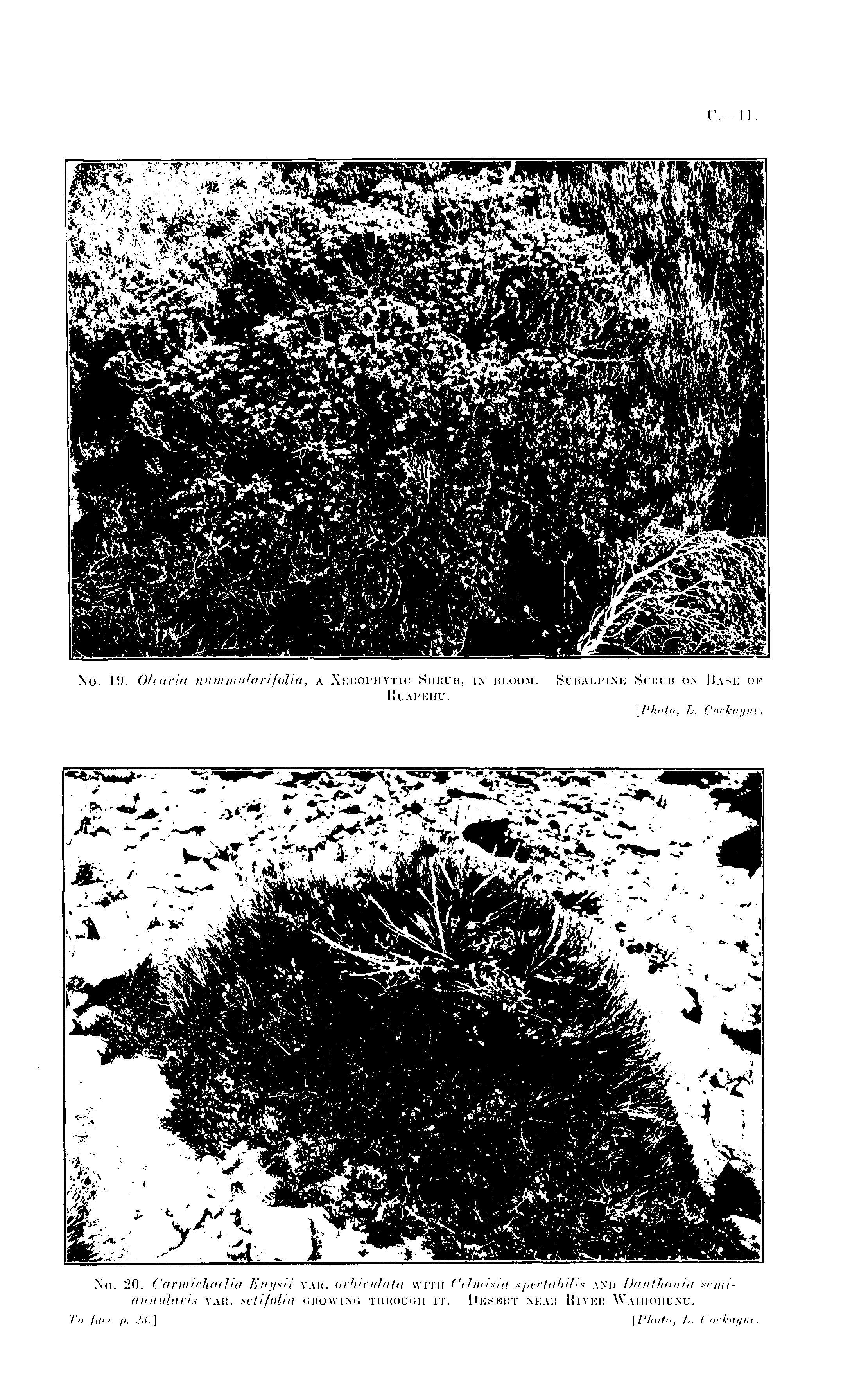 No. 19. Olearia nummularifolia, a Xerophytic Shrub, in bloom. Subalpine Scrub on Base of Ruapehu.