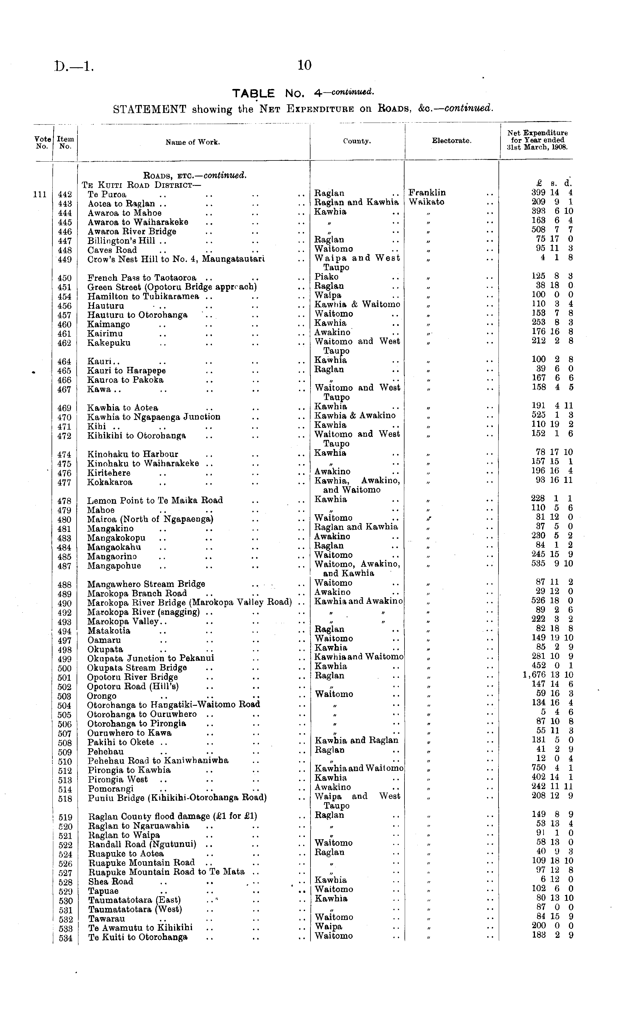 TABLE No. 4- continued. STATEMENT showing the Net Expenditure on Roads, &c. — continued.