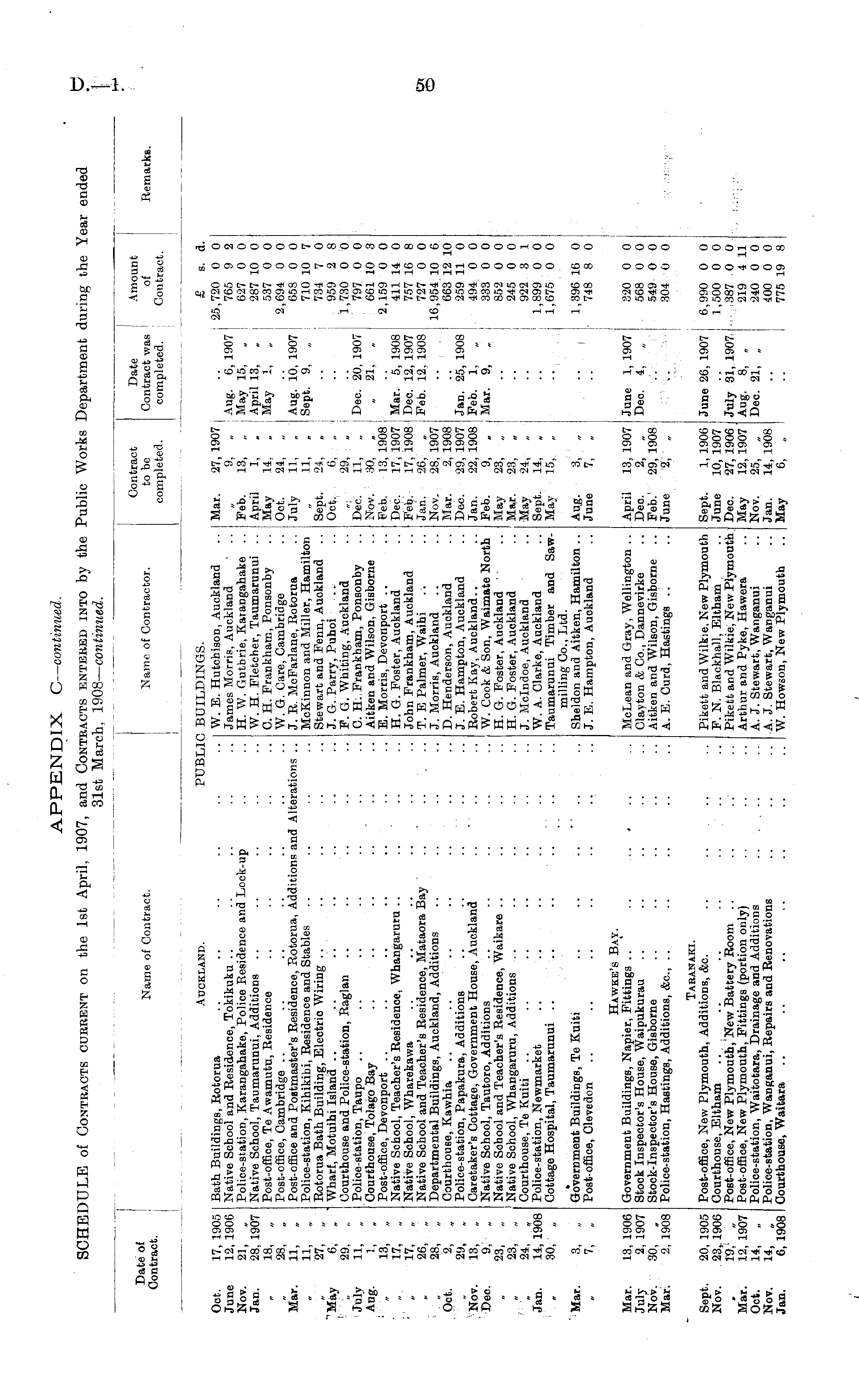 APPENDIX C— continued. SCHEDULE of Contracts current on the 1st April, 1907, and Contracts entered into by the Public Works Department during the Year ended 31st March, 1908— continued.
