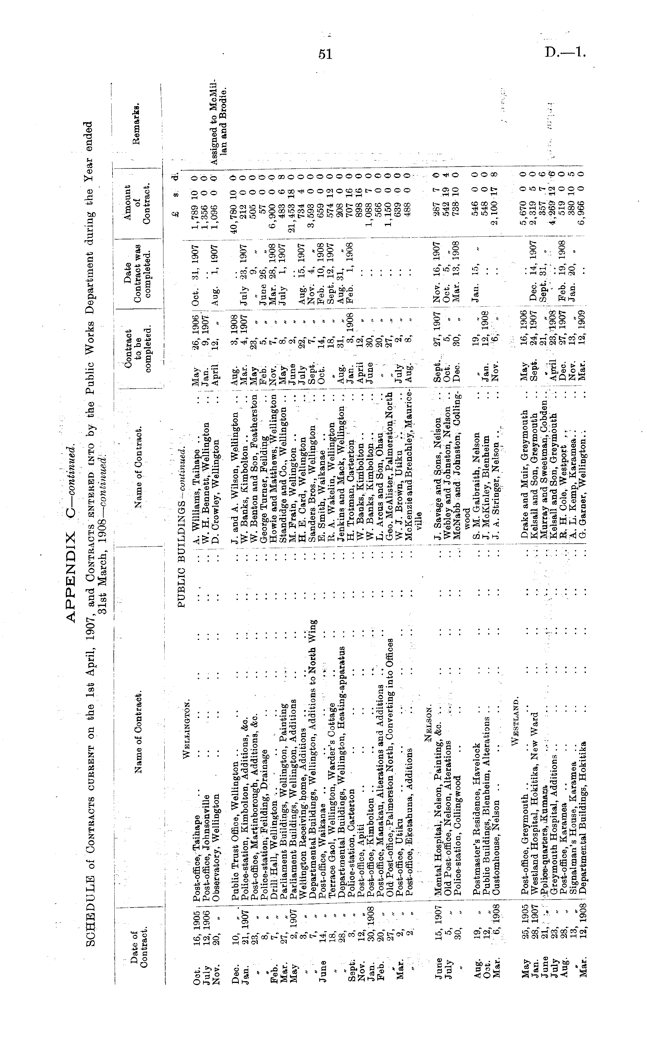 APPENDIX C— continued. SCHEDULE of Contracts current on the 1st April, 1907, and Contracts entered into by the Public Works Department during the Year ended 31st March, 1908— continued.