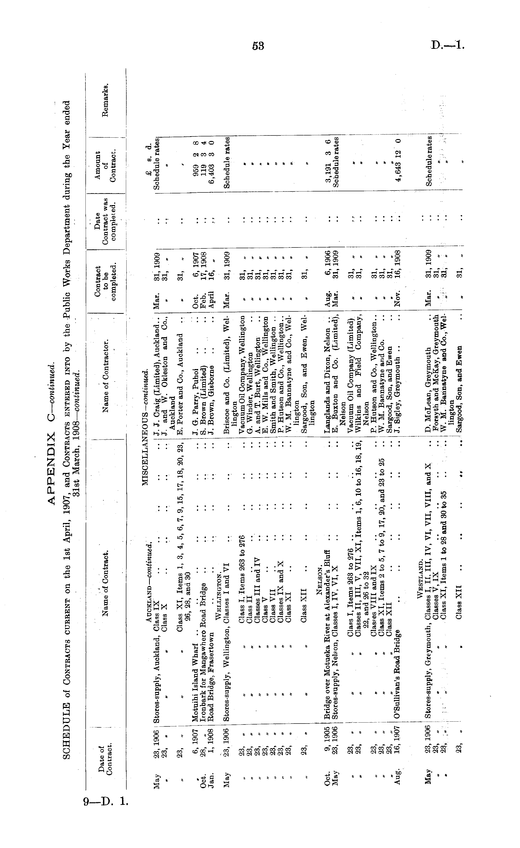 APPENDIX C— continued. SCHEDULE of Contracts current on the 1st April, 1907, and Contracts entered into by the Public Works Department during the Year ended 31st March, 1908— continued.