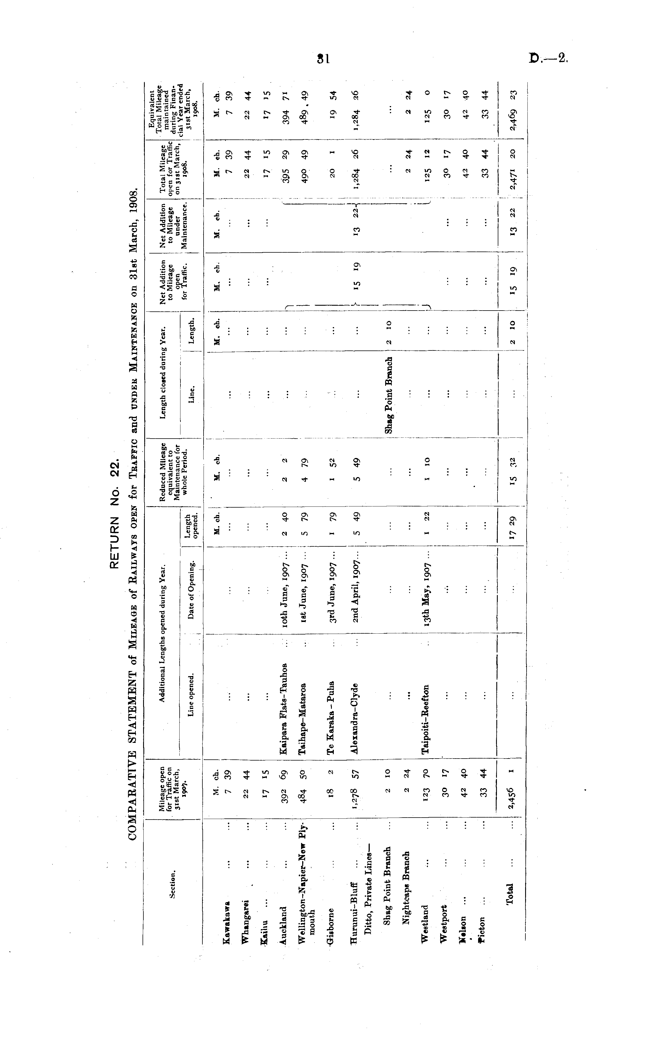 RETURN No. 22. COMPARATIVE STATEMENT of Mileage of Railways open for Traffic and under Maintenance on 31st March, 1908.