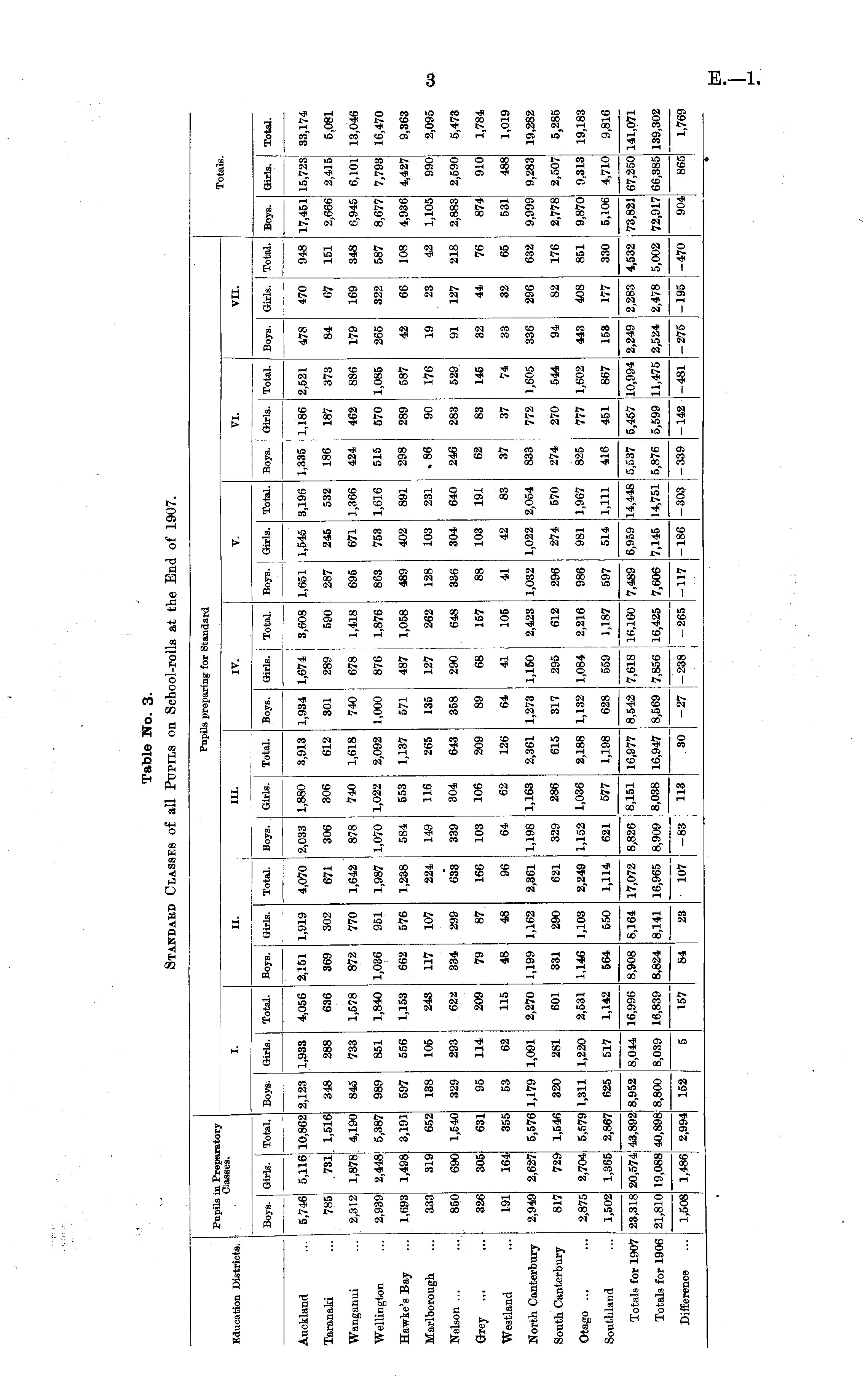 Table No. 3. Stand ard Classes of all Pupils on School-rolls at the End of 1907.
