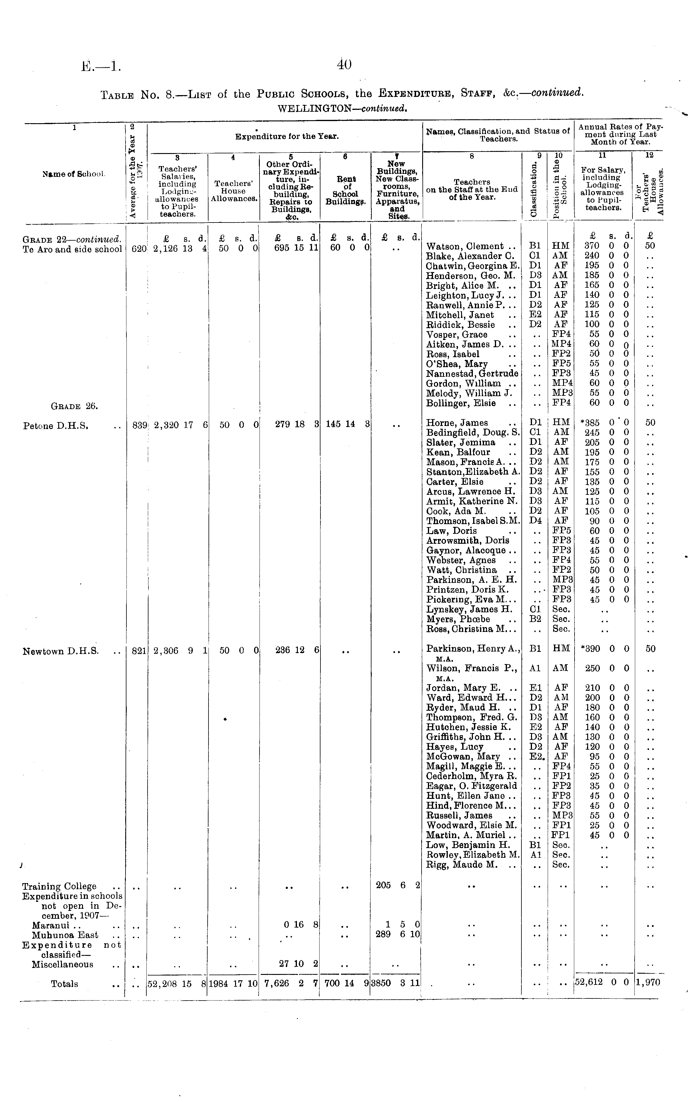 Table No. 8.—List of the Public Schools, the Expenditure, Staff, &c. — continued.