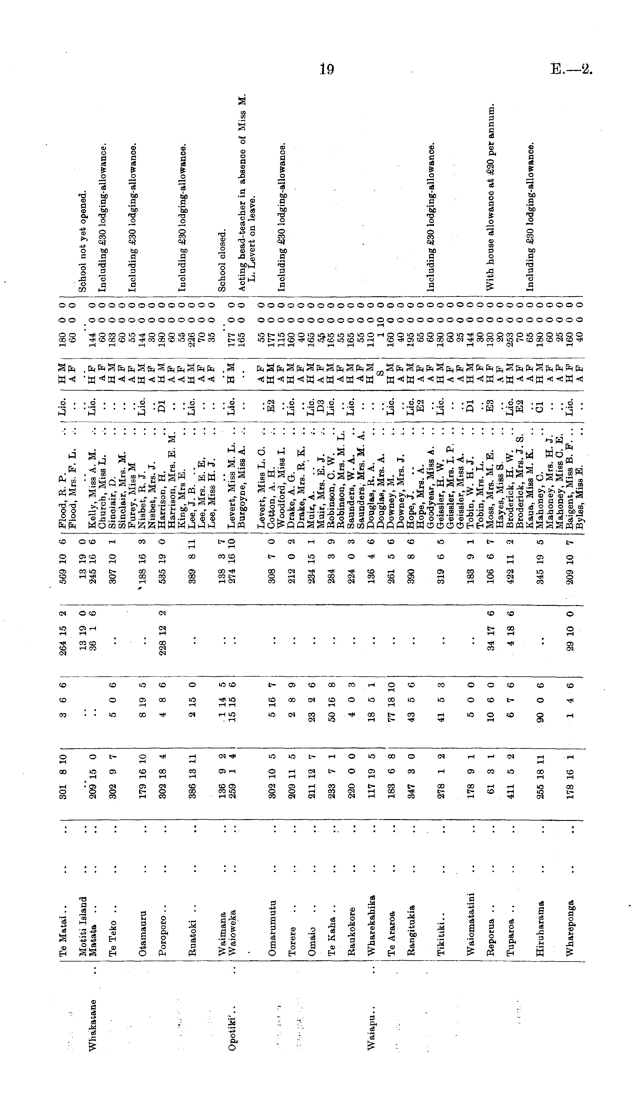 Tβ Matai.. 301 8 10 3 6 6 264 15 2 569 10 6 Flood, R. P. Flood, Mrs. F. L. .-. Lie. Motiti Island Matata .. 13 19 0 36 1 6 13 19 0 245 16 6 AF 60 0 0 hakatane 209 15 0 Kelly, Miss A. M. Church, Miss L. Sinclair, D. Sinclair, Mrs. M. Furey, Miss M Nisbet, R. J. Nisbet, Mrs. J. Harrison, H. Harrison, Mrs. E. M. King, Mrs E. Lee, J. B. .. Lee, Mrs. B. E. Lee, Miss H. J. Lie. HF AF HM AF A F H M AF H M AF AF H M AF AF 144 0 0 60 0 0 183 0 0 60 0 0 55 0 0 144 0 0 30 0 0 180 0 0 60 0 0 55 0 0 226 0 0 70 0 0 35 0 0 School not yet opened. Tβ Teko .. 302 9 7 5 0 6 307 10 1 Including £30 lodging-allowance. Otamauru 179 16 10 8 19 5 1 188 16 3 Lie. Including £30 lodging-allowance. Poroporo .. 302 18 4 4 8 6 228 12 2 535 19 0 I)i Including £30 lodging-allowance. Ruatoki .. 386 13 11 2 15 0 389 8 11 Lie. Waimana Waioweka 136 9 2 259 1 4 . 1 14 5 15 15 6 138 3 7 274 16 10 School closed. Opotiki'.. Levert, Miss M. L. .. Burgoyne, Miss A. Lie. H M 177 0 0 165 0 0 Acting head-teacher in absence of Miss M. L. Levert on leave. I ■ .!!] : ' ■■ ',-'■>' ■ : Waiapu.. Omarumutu Torere Omaio Te Kaha .. Raukokore Wharekahika Tβ Araroa Rangitukia 302 10 5 209 11 5 211 12 7 233 7 1 220 0 0 117 19 5 183 6 8 347 3 0 5 16 7 2 8 9 23 2 6 50 16 8 4 0 3 18 5 1 77 18 10 43 5 6 308 7 0 212 0 2 234 15 1 284 3 9 224 0 3 136 4 6 261 5 6 390 8 6 Levert, Miss L. C. Cotton, A. H. Woodford, Miss I. .. Drake, A. G. Drake, Mrs. R. K. Muir, A. Muir, Mrs. E. J. Robinson, C. W. Robinson, Mrs. M. L. Saunders, W. A. Saunders, Mrs. M. A. Douglas, R. A. Douglas, Mrs. A. Downey, M. Downey, Mrs. J. :. Hope, J. Hope, Mrs. A. Goodyear, Miss A. Geissler, H. W. Geissler, Mrs. I. P. Geissler, Miss A. Tobin, W.H.J. Tobin, Mrs. L. Moss, Mrs. M. E. Hayes, Miss 8. Broderick, H. W. Broderick, Mrs. J. S. Kaua, Miss M. K. Mahoney, C. Mahoney, Mrs. H. J. Mahoney, Miss C. E. Baigent, Miss B. F. Byles, Miss E. E2 Lie. Lie. D3 Lie. Lie Lie. Lie. E2 AF HM AF H M AF HM A F HM AF H M AF H M S H M AF HM AF AF H M A F AF HM A F HF A F H M AF AF H M A F AF HF AF 55 0 0 177 0 0 115 0 0 160 0 0 40 0 0 165 0 0 55 0 0 165 0 0 55 0 0 165 0 0 55 0 0 110 0 0 1 10 0 160 0 0 40 0 0 195 0 0 65 0 0 60 0 0 180 0 0 60 0 0 25 0 0 144 0 0 30 0 0 130 0 0 20 0 0 253 0 0 70 0 0 65 0 0 180 0 0 60 0 0 25 0 0 160 0 0 40 0 0 Including £30 lodging-allowance. Including £30 lodging-allowance. Tikitiki.. 278 1 2 41 5 3 319 6 5 Lie. Waiomatatini 178 9 1 5 0 0 183 9 1 m With house allowance at £20 per annum. Reporua .. 61 3 1 10 6 0 34 17 6 106 6 7 E3 Tuparoa .. 411 5 2 6 7 6 4 18 6 422 11 2 Lie. E2 Including £30 lodging-allowance. Hiruharama 255 18 11 90 0 6 345 19 5 ci Whareponga 178 16 1 14 6 29 10 0 209 10 7 Lie.