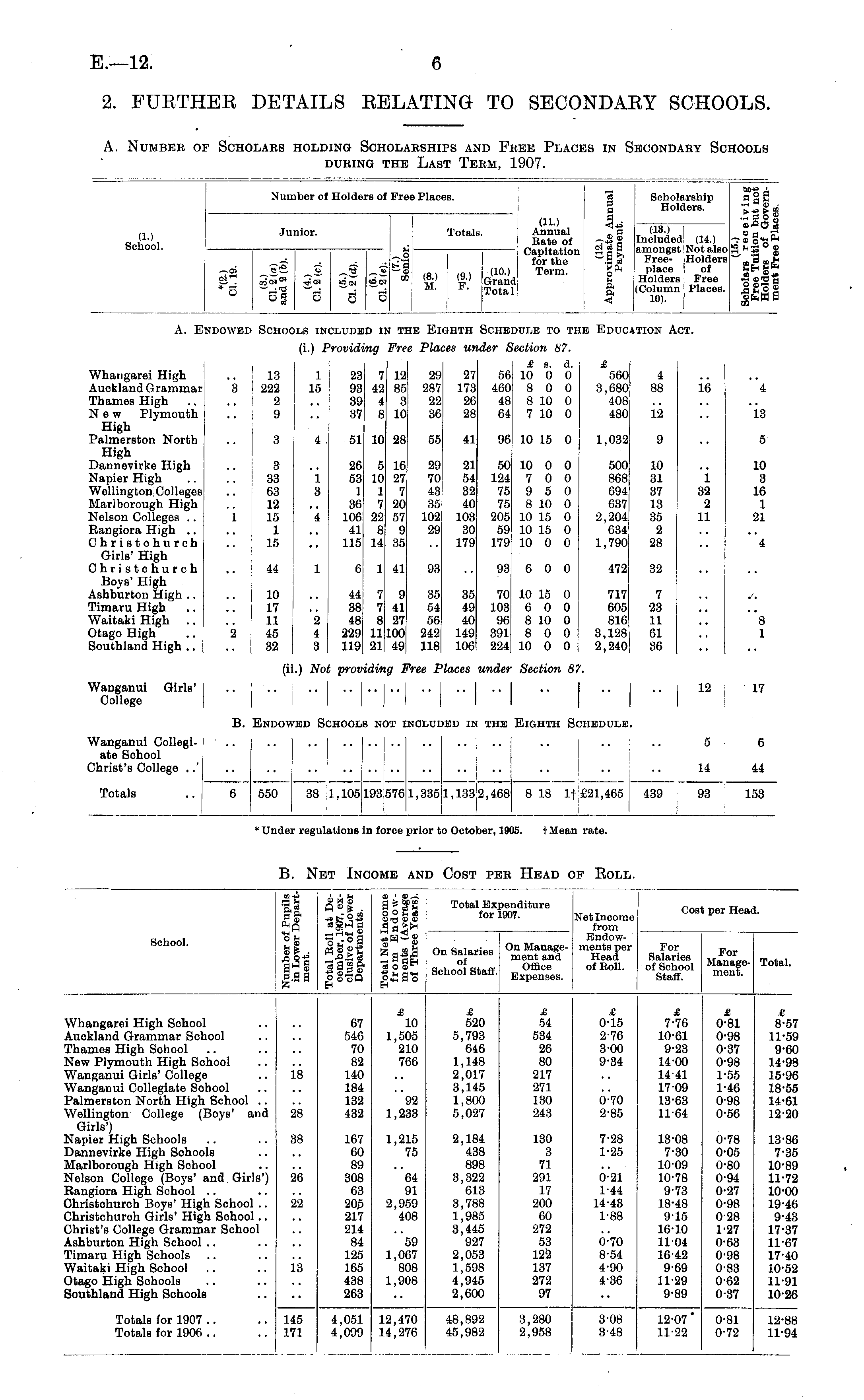 A. Number of Scholars holding Scholarships and Free Places in Secondary Schools during the Last Term, 1907.