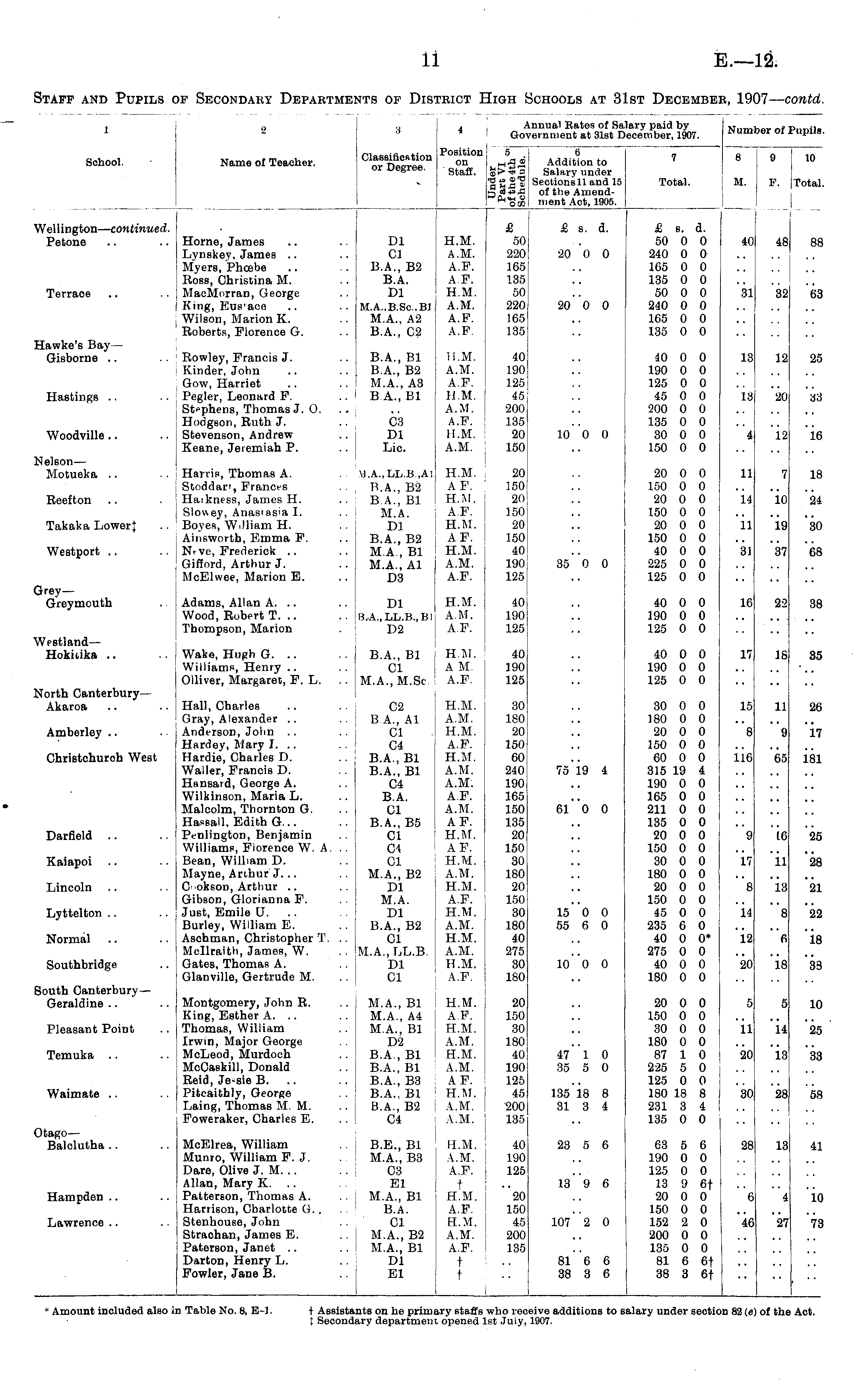 Staff and Pupils of Secondary Departments of District High Schools at 31st December, 1907— contd.
