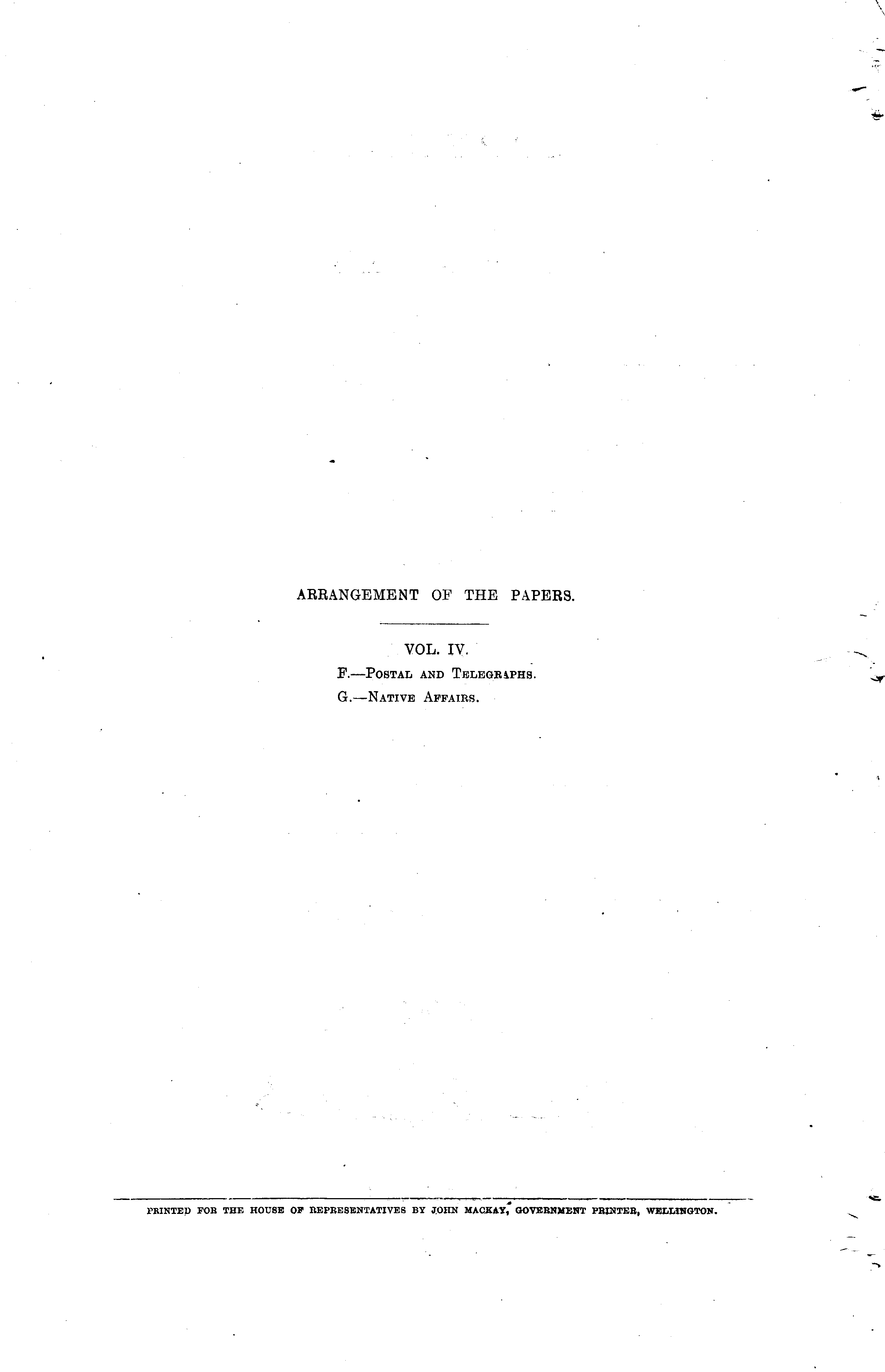 ARRANGEMENT OF THE PAPERS. VOL. IV. F.—Postal and Telegraphs. G.—Native Affairs.