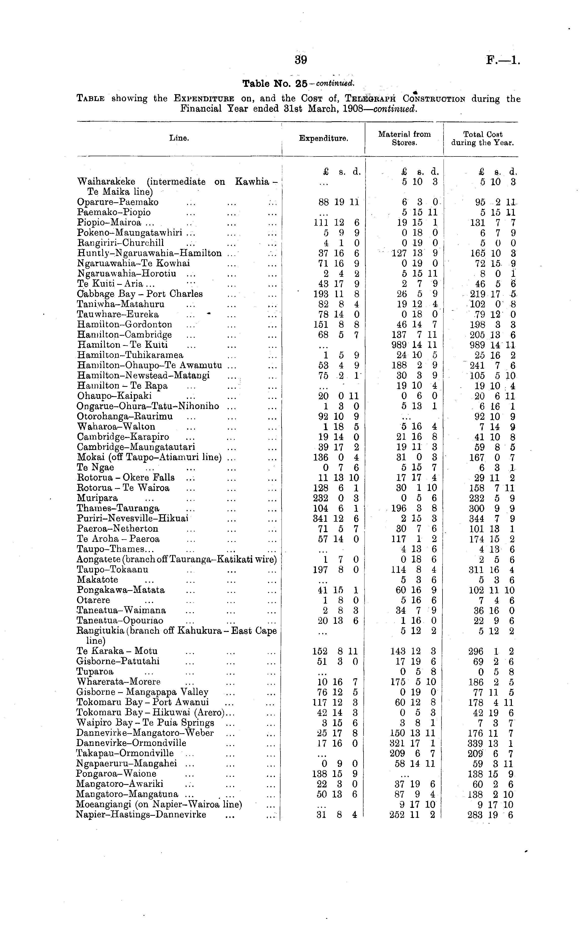 Table No. 25- continued. Table showing the Expenditure on, and the Cost of, Telegraph Construction during the Financial Year ended 31st March, 1908— continued.