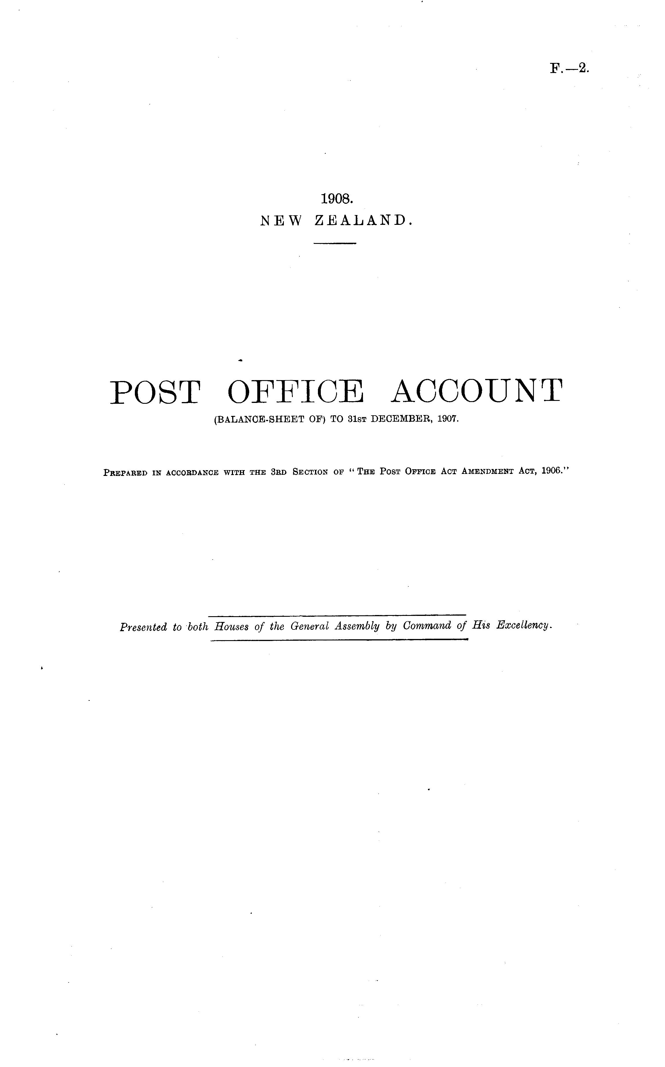 POST OFFICE ACCOUNT (BALANCE-SHEET OF) TO 31st DECEMBER, 1907. Prepared in accordance with the 3rd Section of "The Post Office Act Amendment Act, 1906."