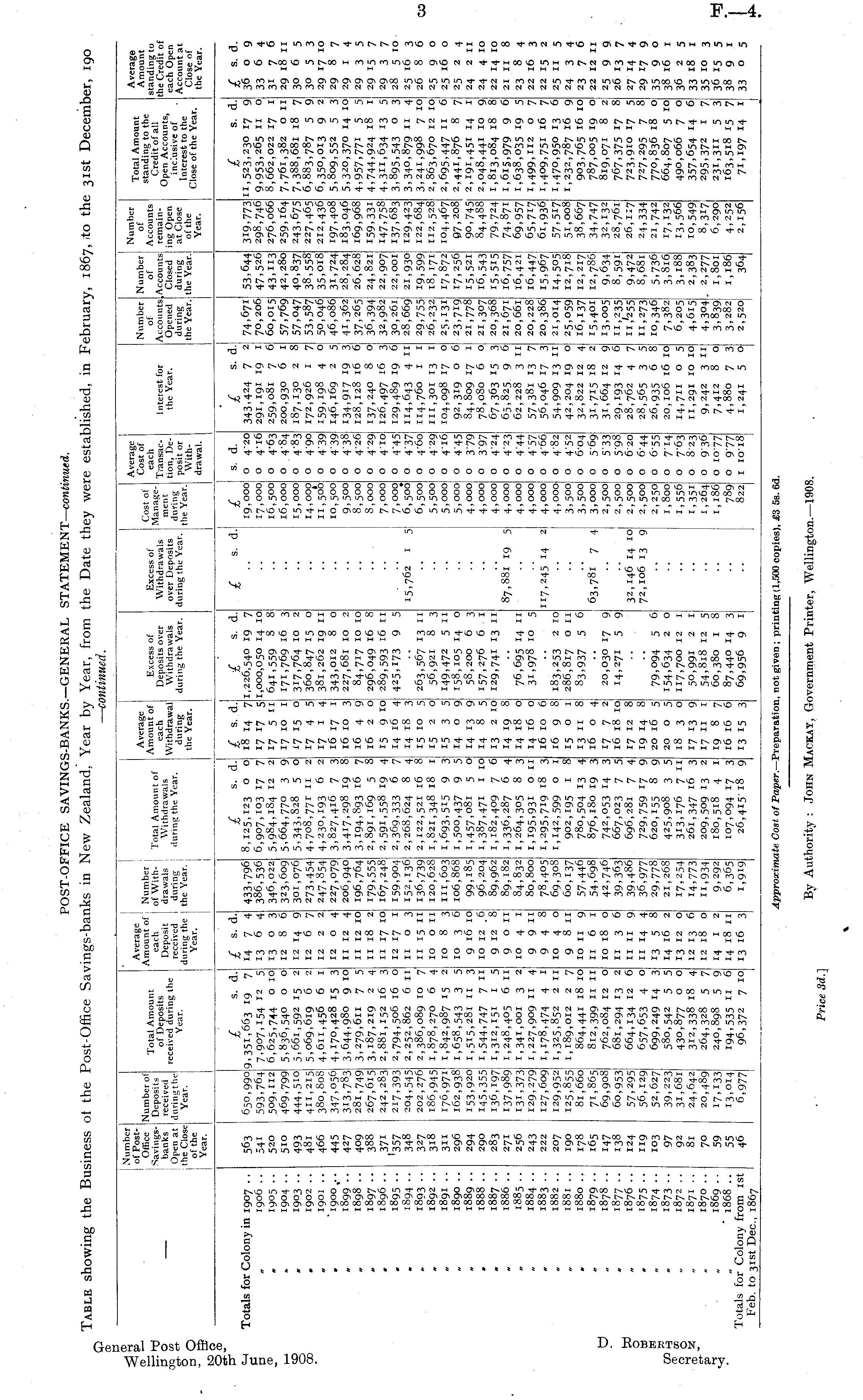 General Post Office, D. Robertson, Wellington, 20th June, 1908. Secretary.