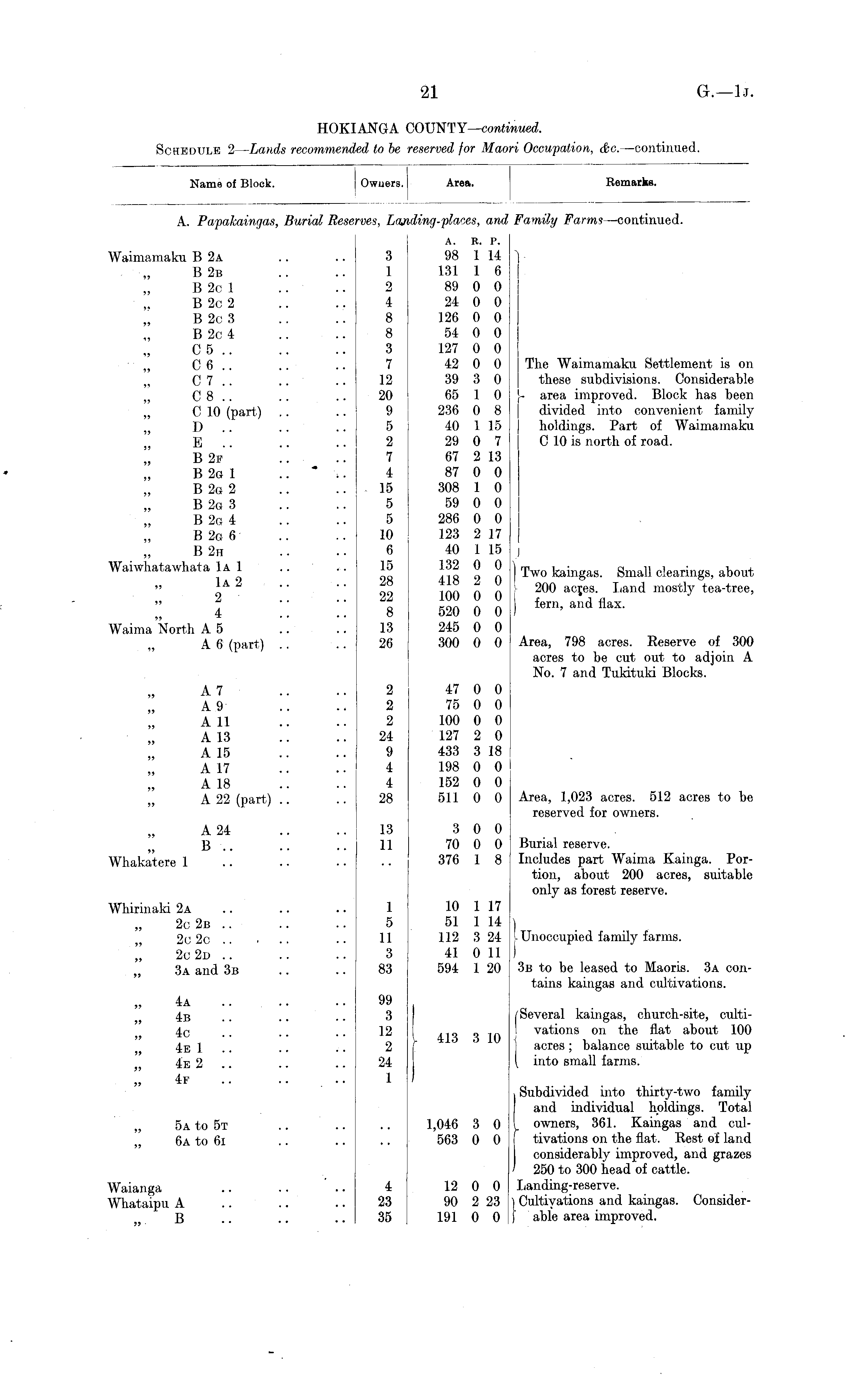 HOKIANGA COUNTY— continued. Schedule 2— Lands recommended to be reserved for Maori Occupation, &c. —continued.
