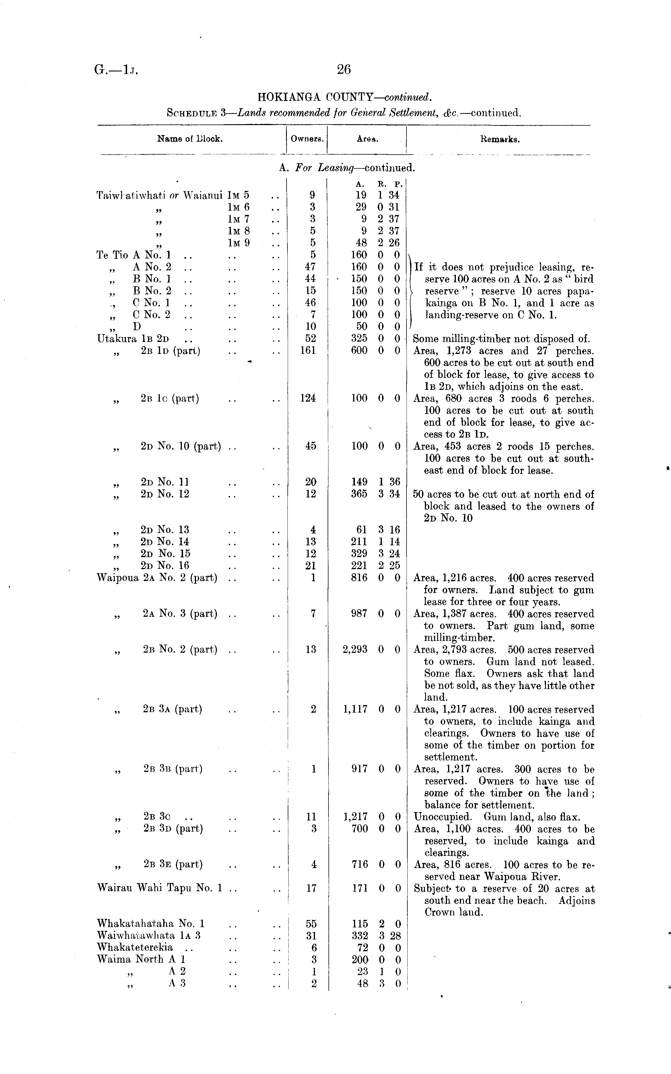 HOKIANGA COUNTY— continued. Schedule 3— Lands recommended for General Settlement, &c. —continued.