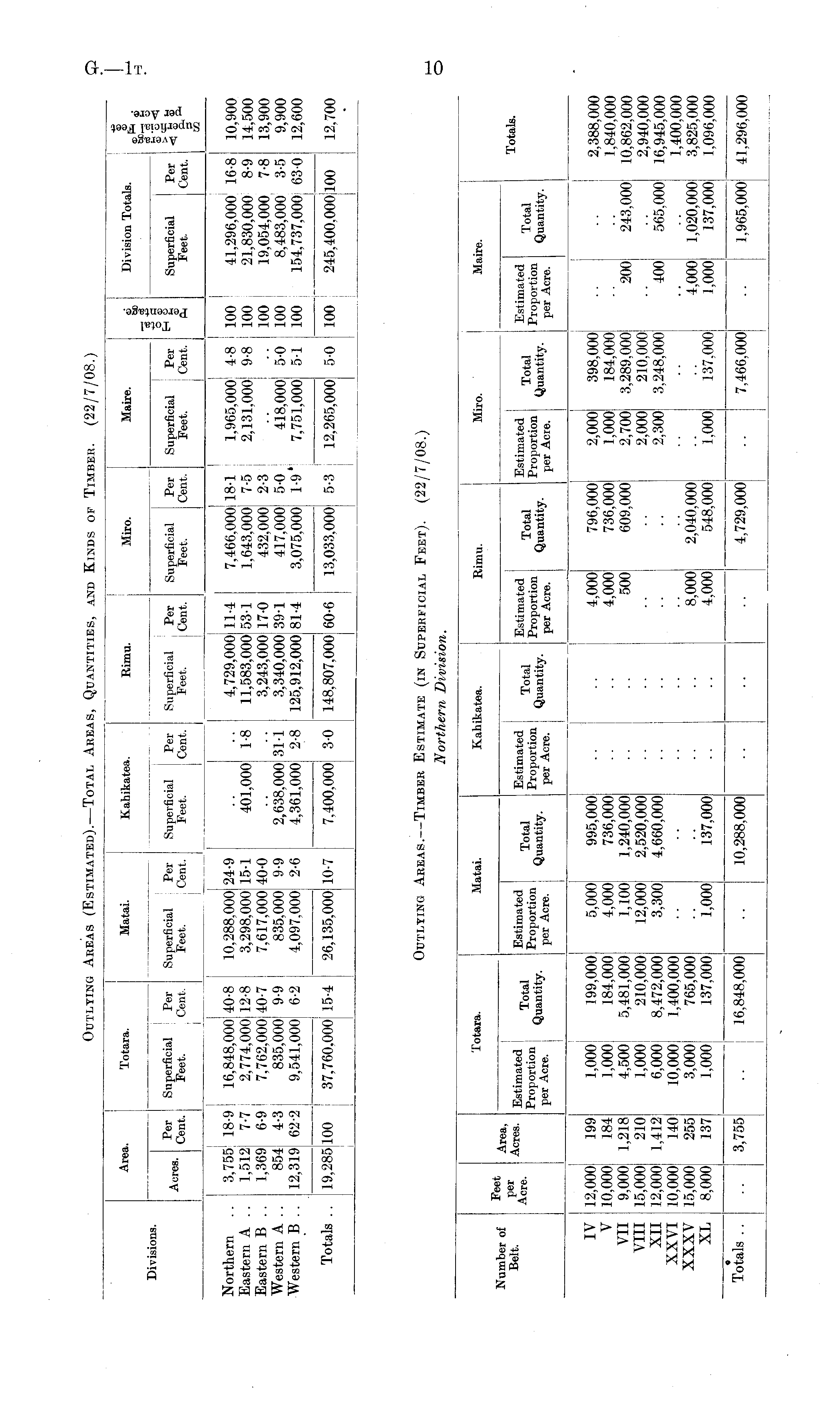 Totara. Matai. Kahikatea. Rimu. Miro. Maire. Number of Belt. Feet Area, Acres. per Acre. Estimated Proportion per Acre. Total Quantity. Estimated Proportion per Acre. Total Quantity. Estimated n, , , D .. Total Proportion r. ... per Acre. Q uan *%- Estimated Proportion per Acre. I Total Quantity. Estimated Proportion per Acre. Total Quantity. Estimated ~ , Proportion r, ... per Acre. Quantity. Totals. IV V VII VIII XII XXVI XXXV XL 12,000 10,000 9,000 15,000 12,000 10,000 15,000 8,000 199 184 1,218 210 1,412 140 255 137 1,000 1,000 4,500 1,000 6,000 10,000 3,000 1,000 199,000 184,000 5,481,000 210,000 8,472,000 1,400,000 765,000 137,000 5,000 4,000 1,100 12,000 3,300 995,000 736,000 1,240,000 2,520,000 4,660,000 4,000 4,000 500 .. 796,000 736,000 609,000 2,000 1,000 2,700 2.000 2,300 398,000 184,000 3,289,000 210,000 3,248,000 200 400 243,000 565,000 2,388,001 1,840,00( 10,862,001 2,940,001 16,945,001 1,400,001 3,825,001 1,096,001 1,000 137,000 8,000 4,000 2,040,000 548,000 1.000 137,000 4.000 1,000 1,020,000 137,000 Totals .. 3,755 16,848,000 10,288,000! 4,729,000! 7,466,000 1,965,000 41,296,01
