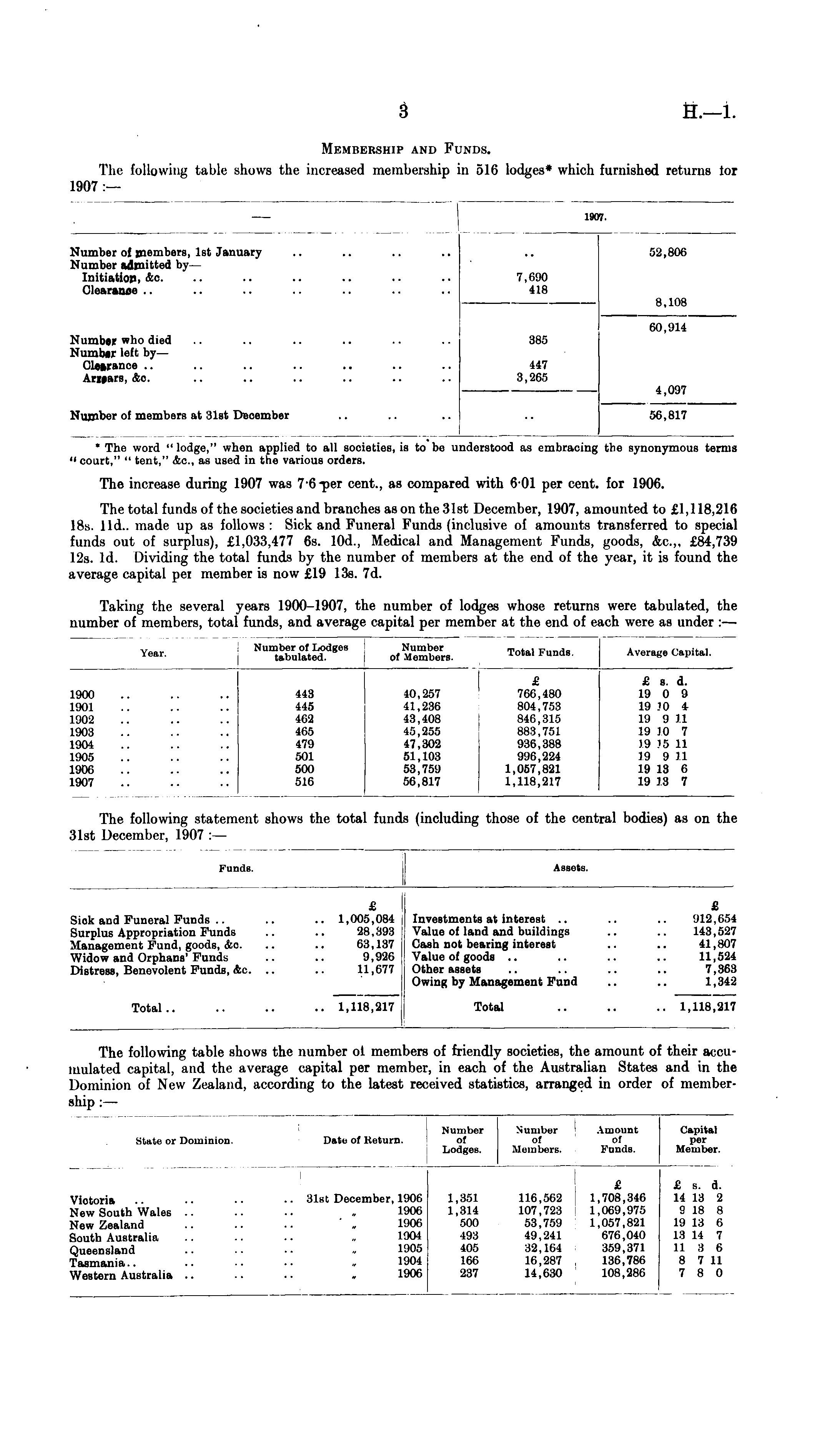 Membership and Funds. The following table shows the increased membership in 516 lodges* which furnished returns lor 1907 :—