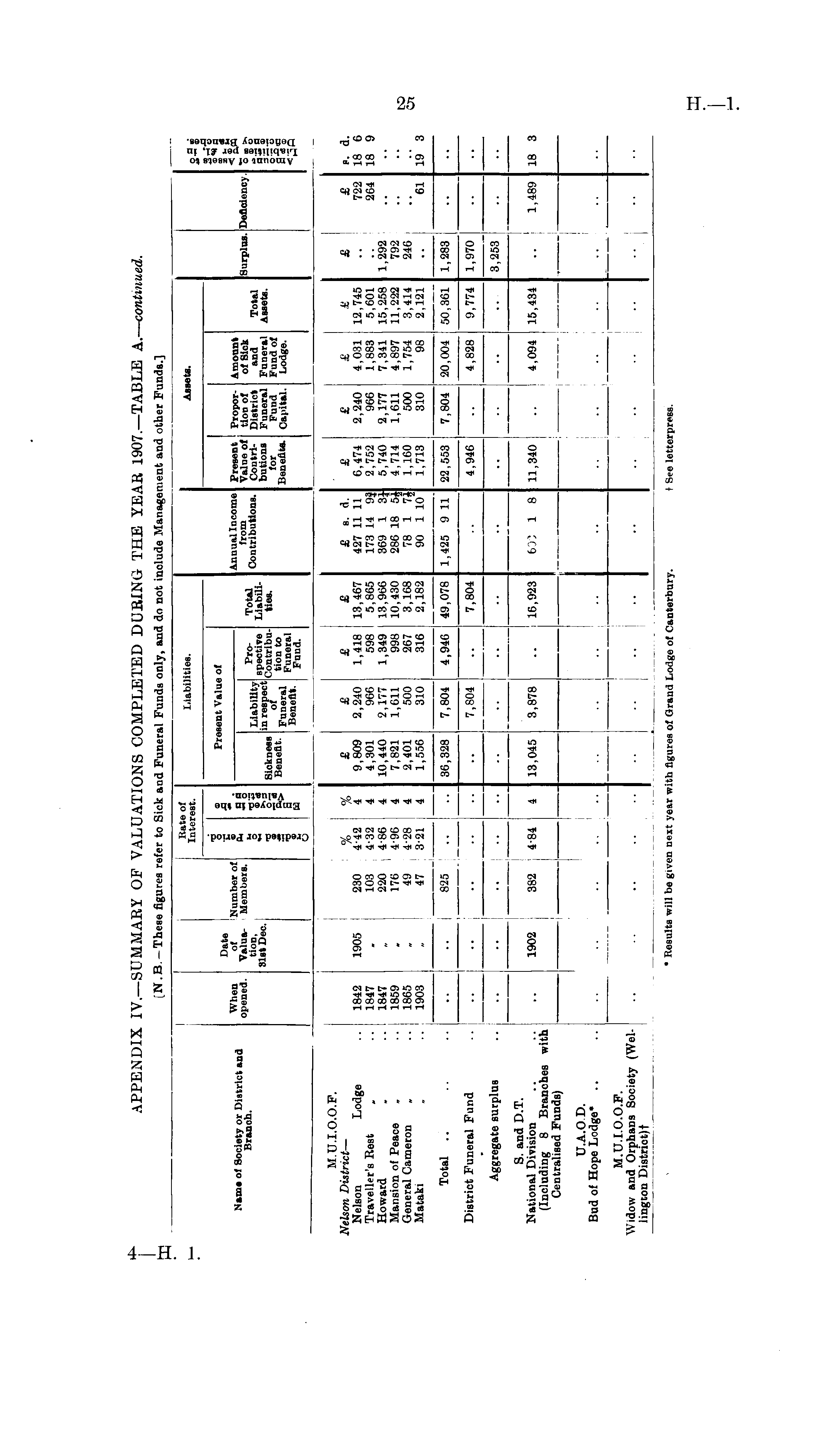 APPENDIX IV.—SUMMARY OF VALUATIONS COMPLETED DURING THE YEAR 1907.—TABLE A.— continued. N.B. —These figures refer to Sick and Funeral Funds only, and do not include Management and other Funds.]