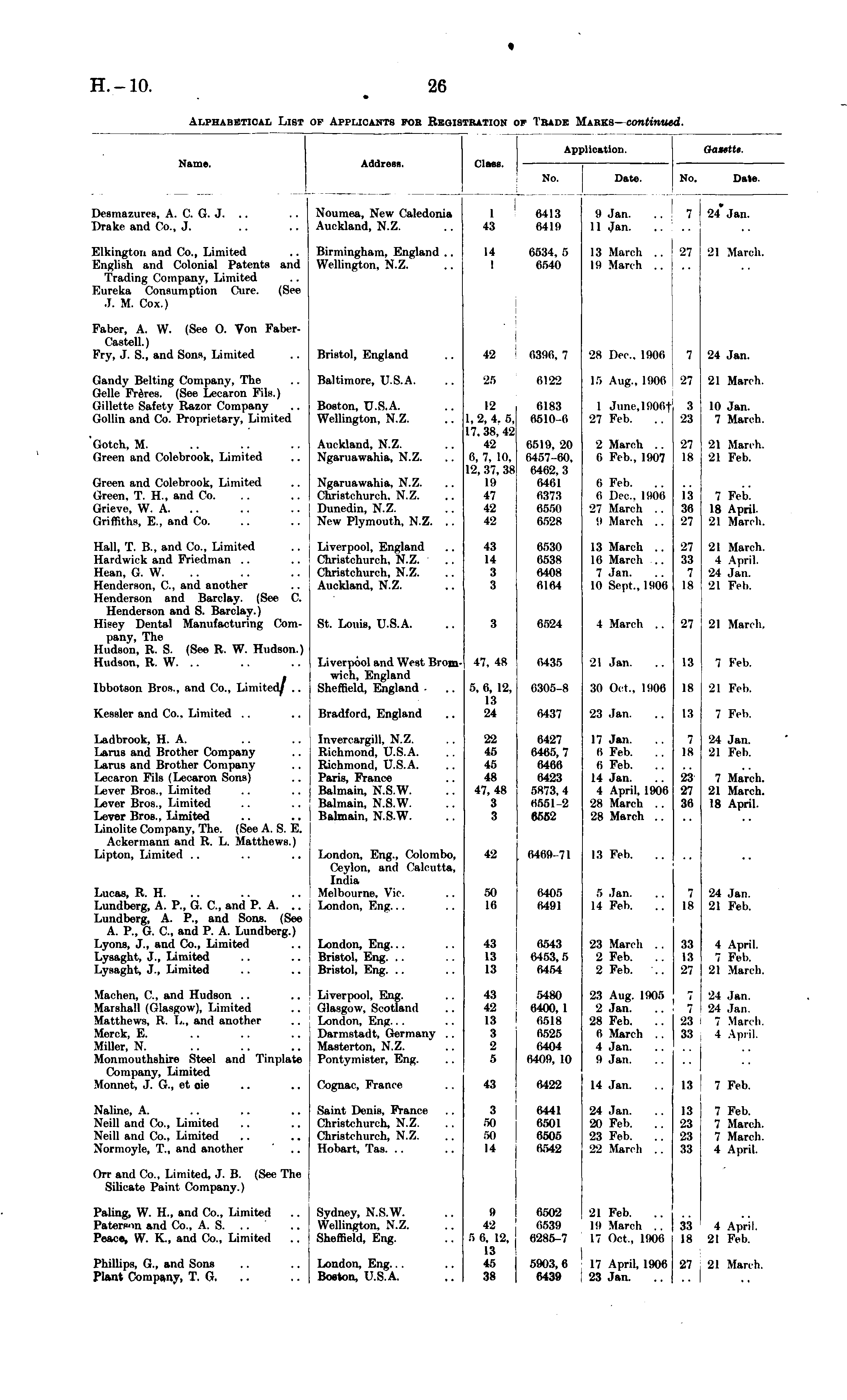 Alphabetical List of Applicants for Registration of Trade Marks— continued.