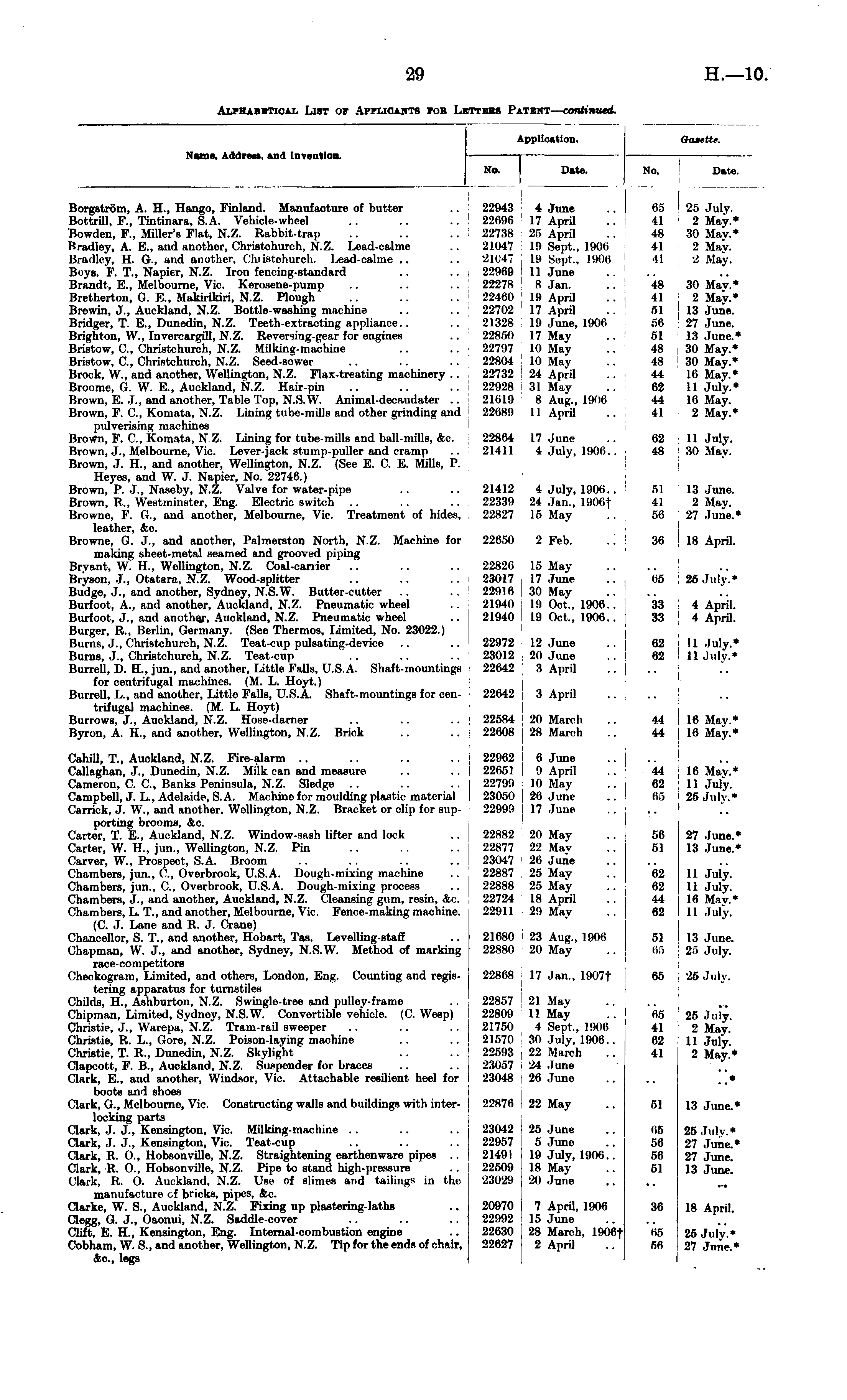 Alphabetical List of Applicants for Letters Patent— continued.