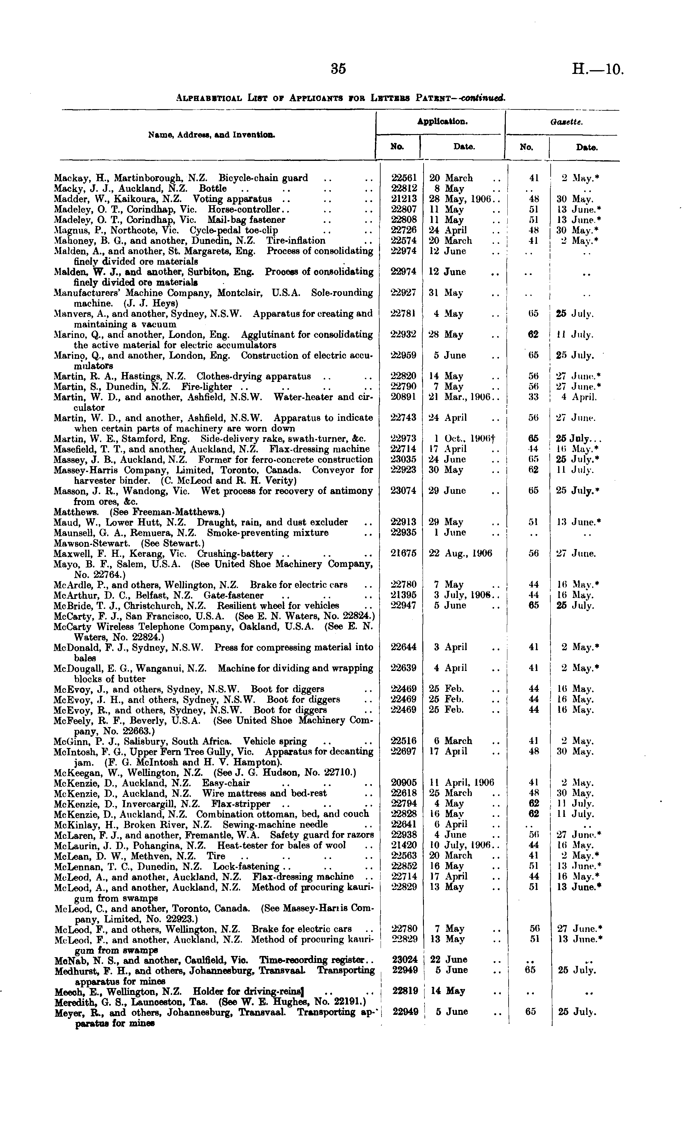 Alphabetical List of Applicants for Letters Patent— continued.