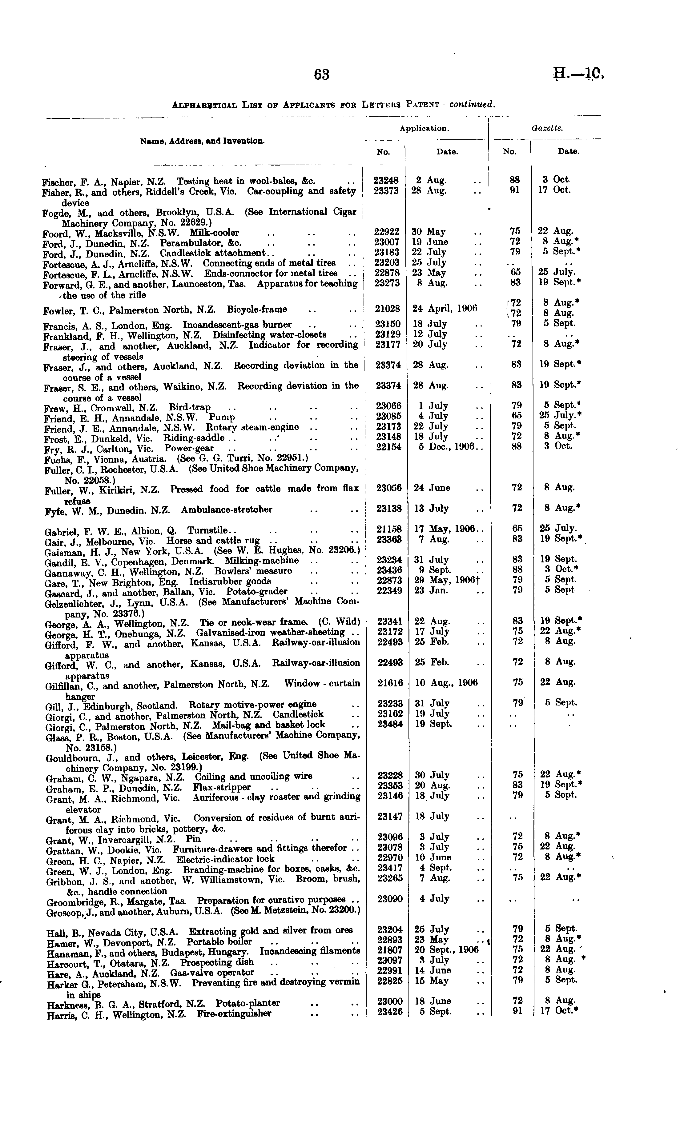 Alphabetical List of Applicants for Letters Patent-continued.