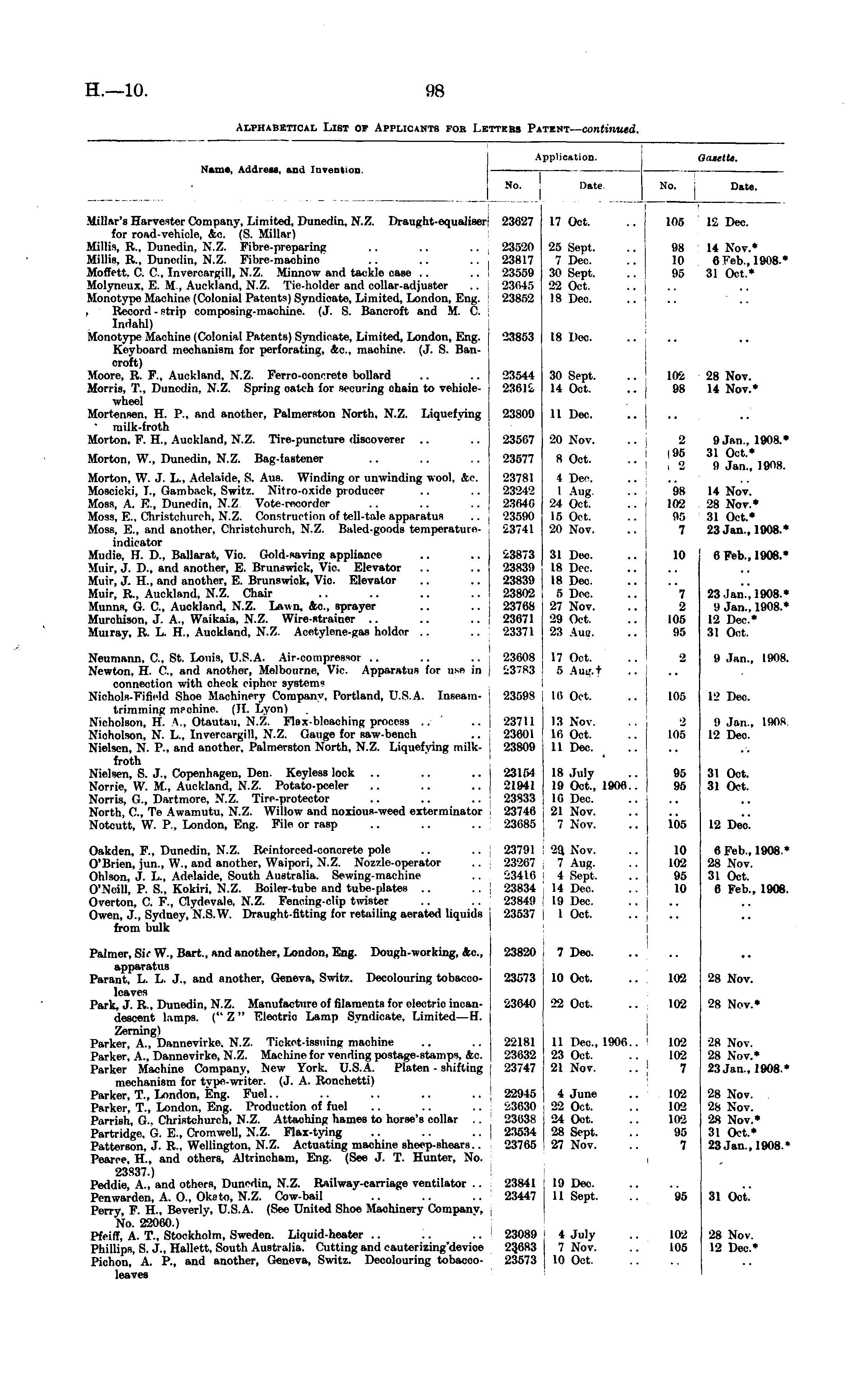 Alphabetical List of Applicants for Letters Patent— continued.