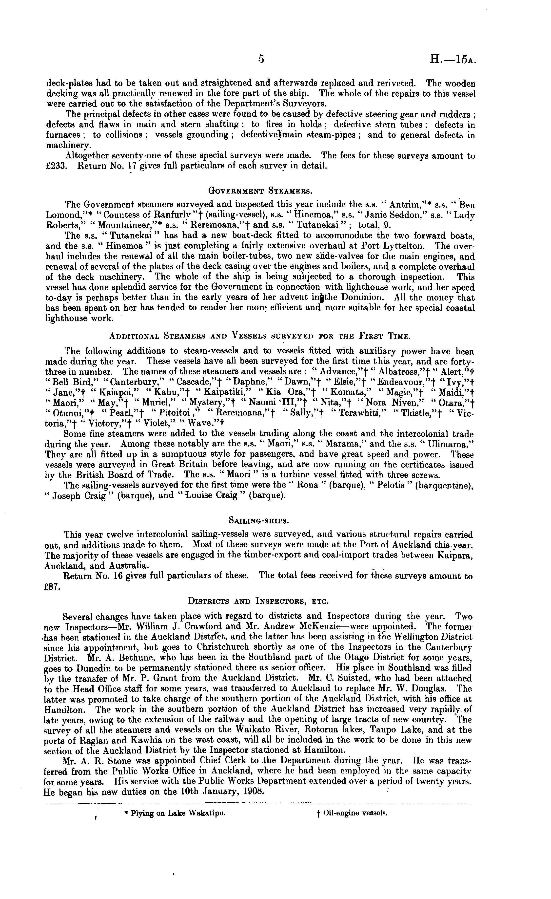 * Plying on Lake Wakatipu. f < til-engine vessels.