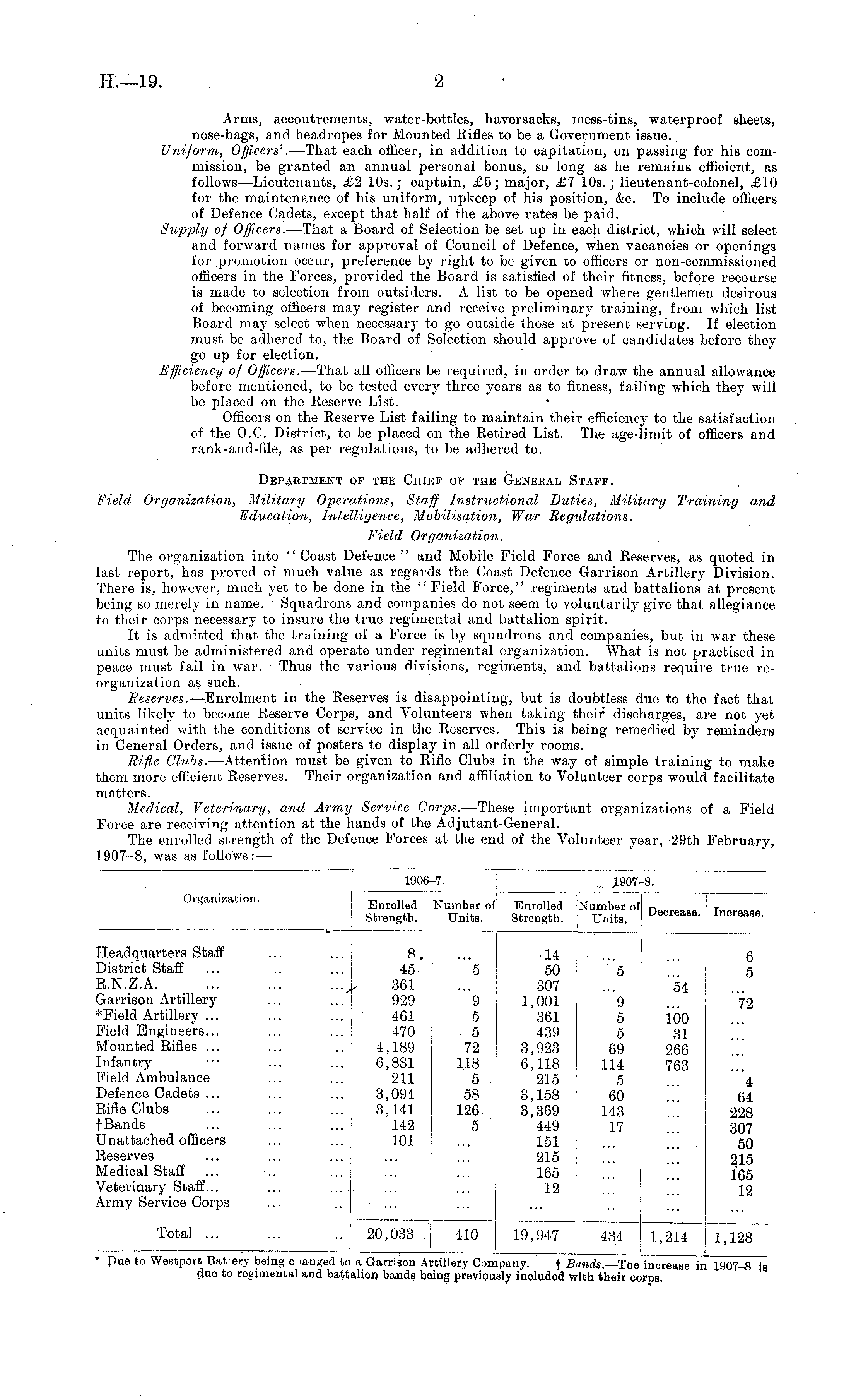 Medical, Veterinary, and Army Service Corps. —These important organizations of a Field Force are receiving attention at the hands of the Adjutant-General. The enrolled strength of the Defence Forces at the end of the Volunteer year, 29th February, 1907-8, was as follows: —
