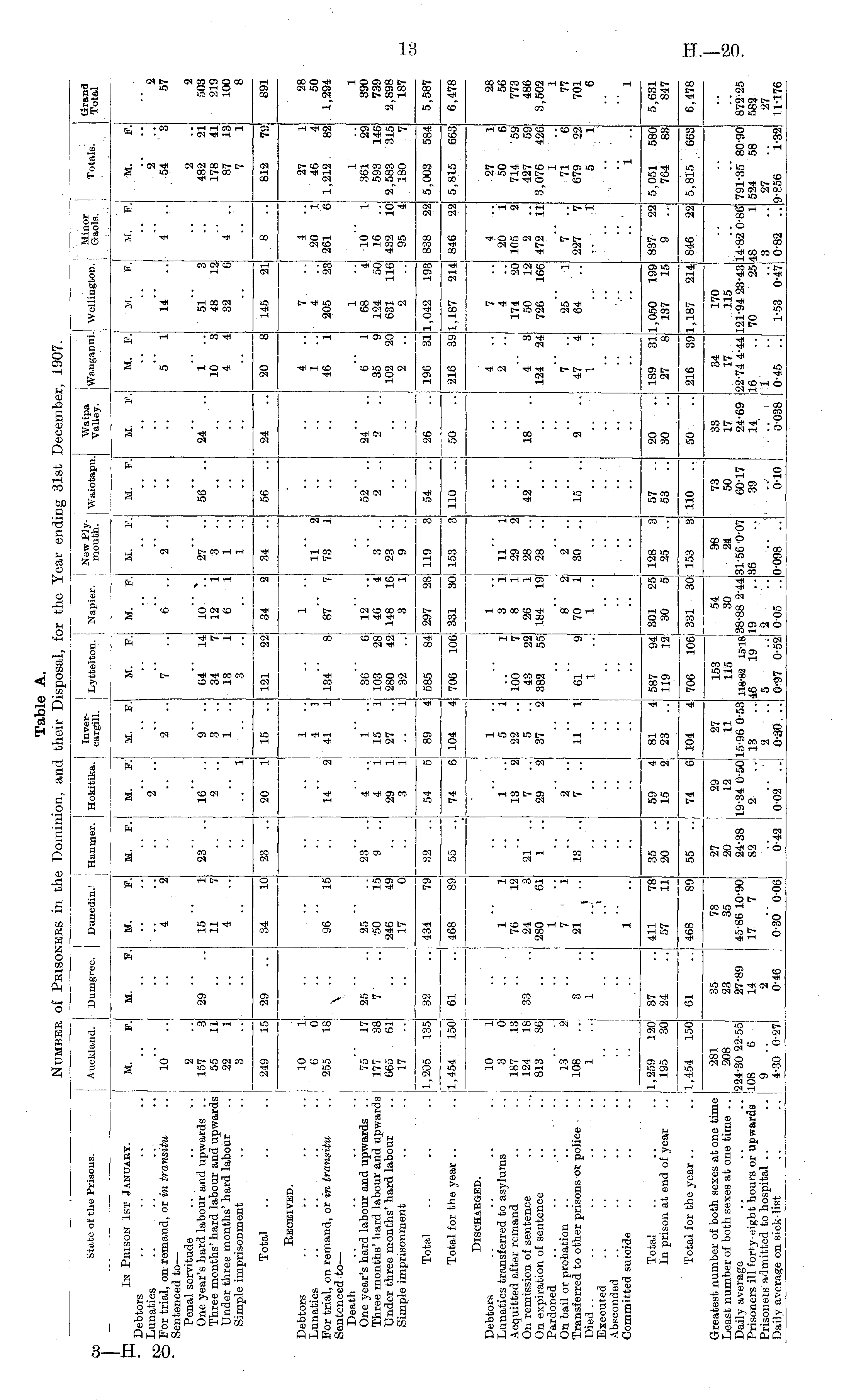 Table A. Number of Prisoners in the Dominion, and their Disposal, for the Year ending 31st December, 1907.