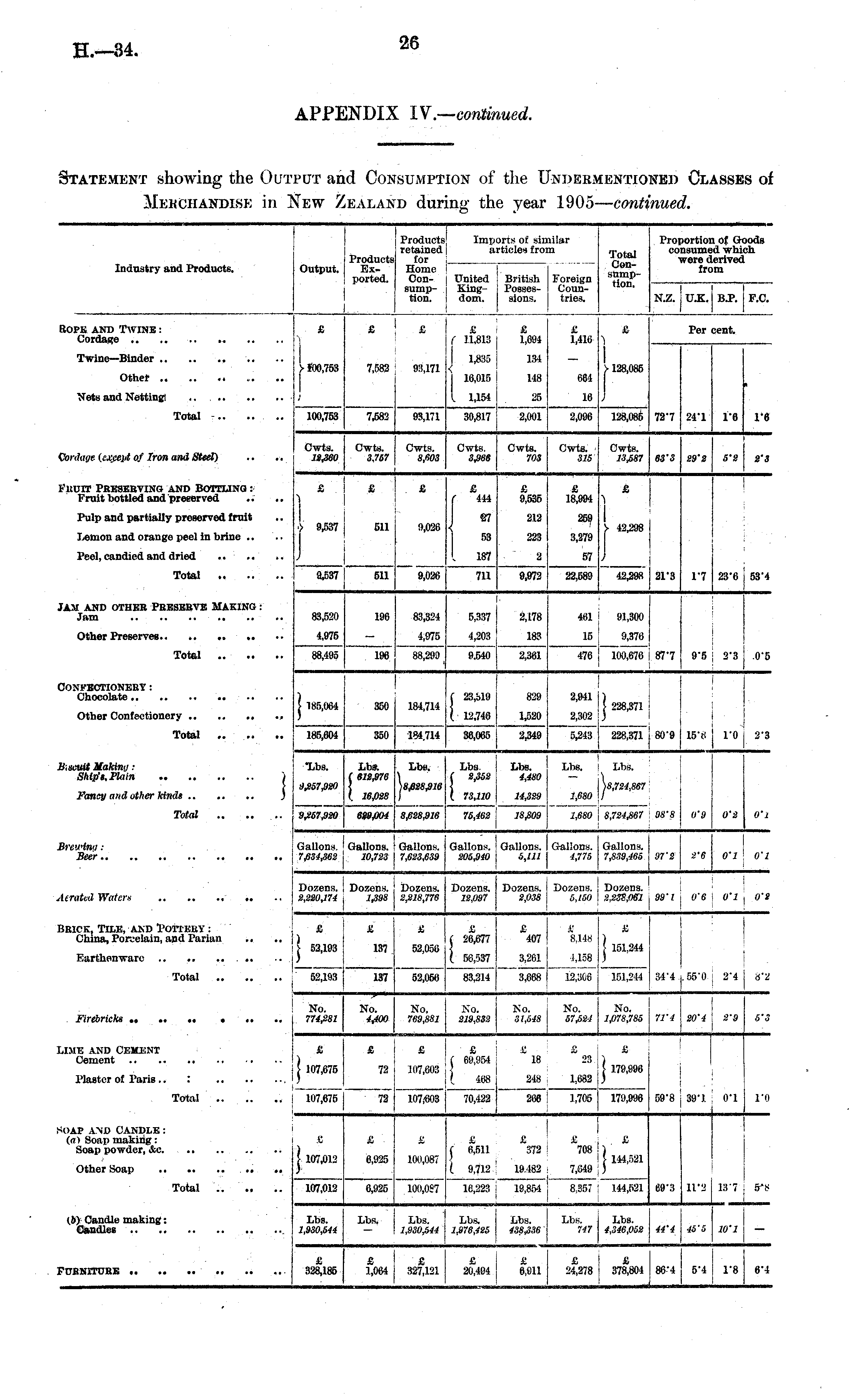 Statement showing the Output and Consumption of the Undermentioned Classes of Merchandise in New Zealand during the year 1905— continued.