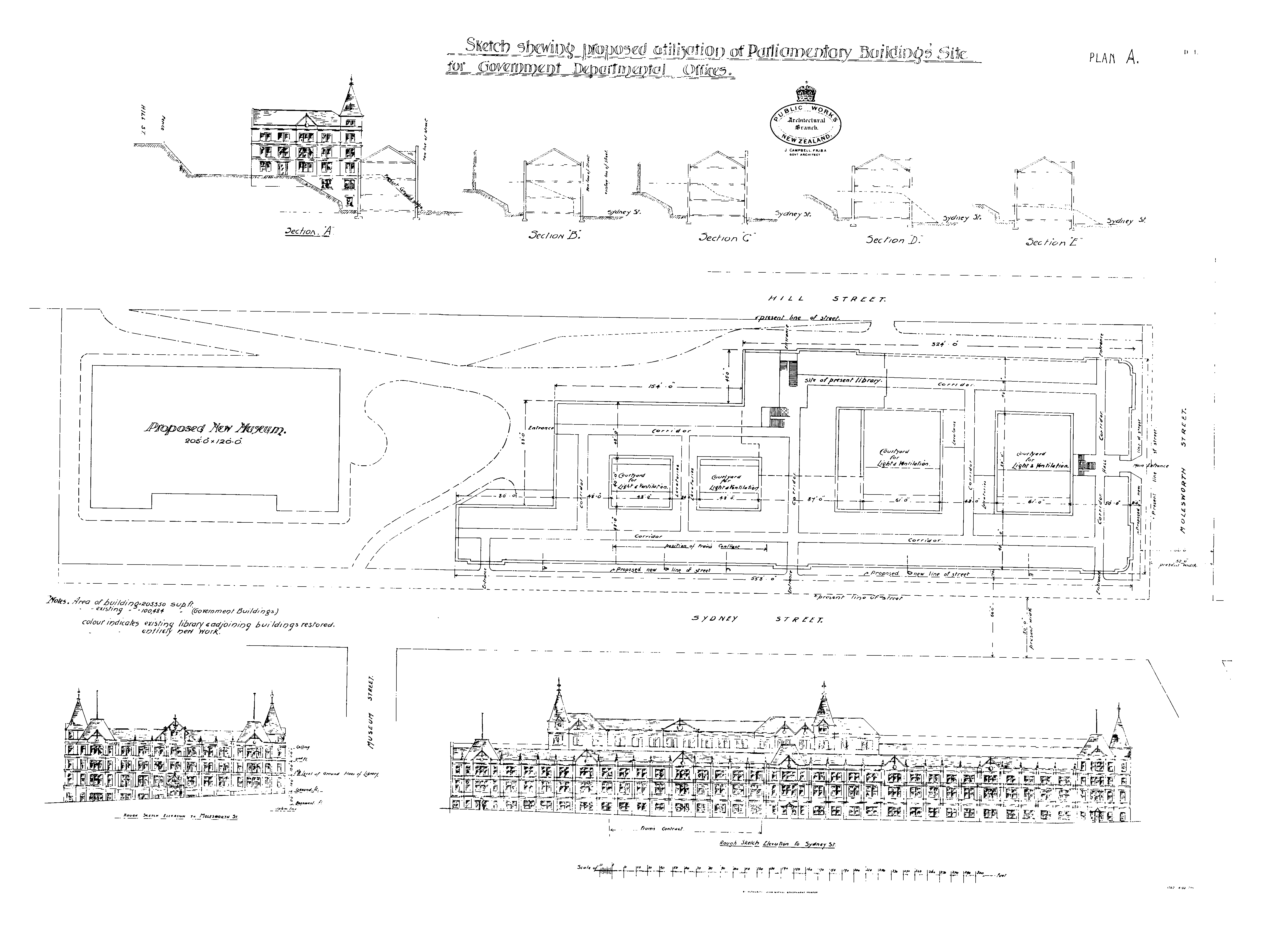 Sketch shewing proposed utilization of parliamentary building site for Governmental Department offices