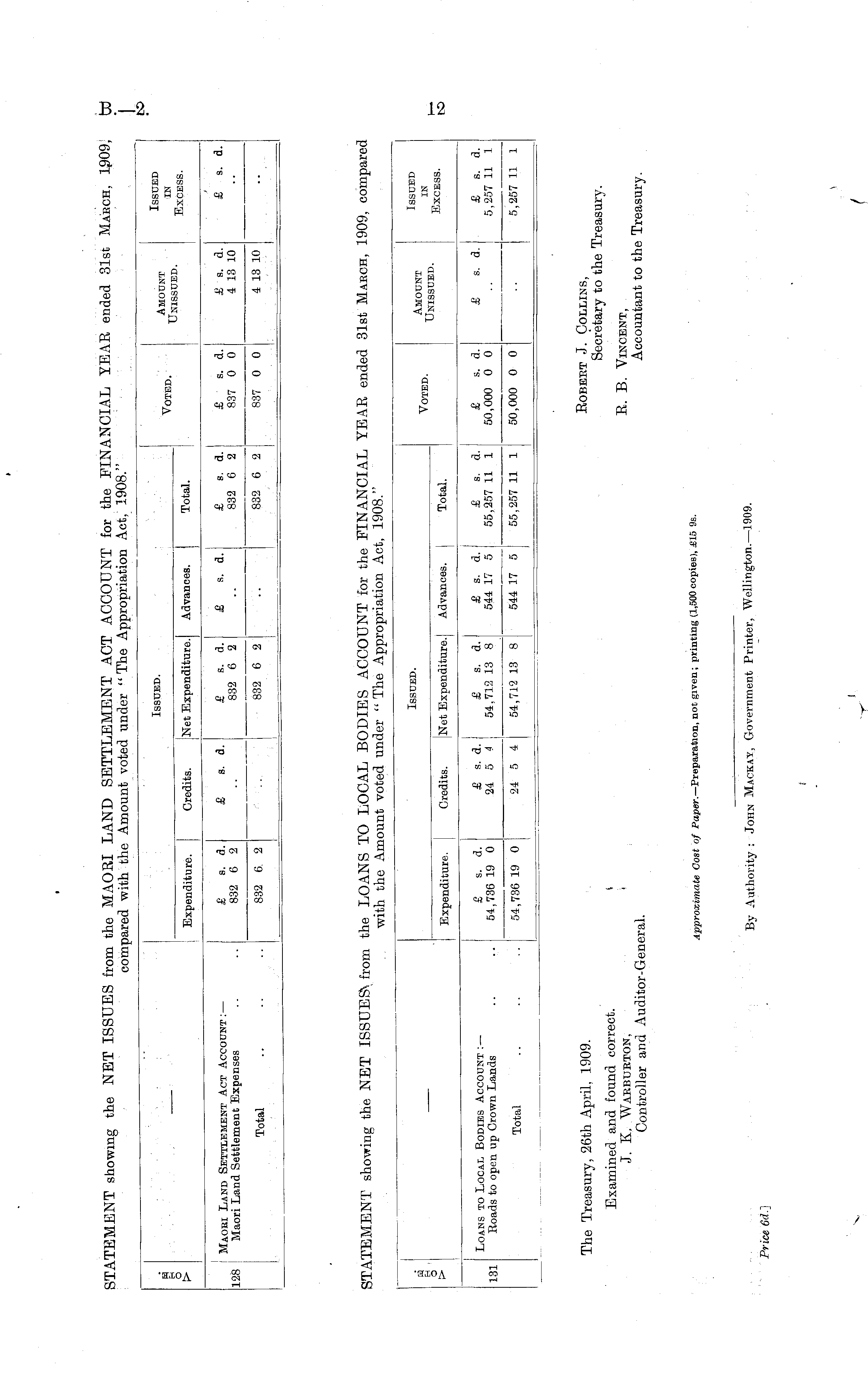 The Treasury, 26th April, 1909. Eobeet J. Collins, Secretary to the Treasury. Examined and found correct. J. K. Wabbubton, B. B. Vincent, Controller and Auditor-General. Accountant to the Treasury. Approximate Cost of Paper.— Preparation, not given; printing (1,500 copies), £15 9s.