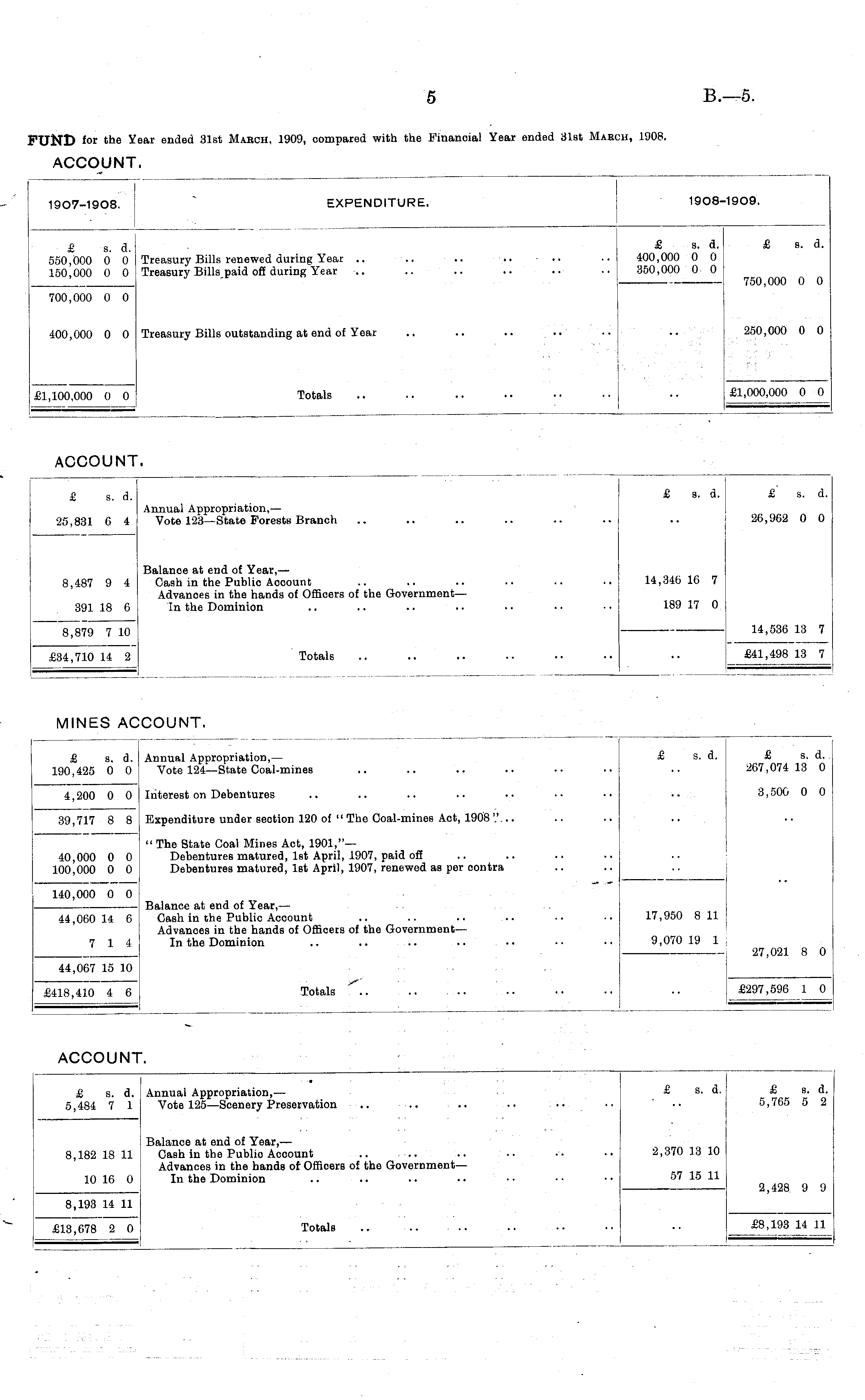 1907-1908. EXPENDITURE. 1908-1909. £ s. d. 550,000 0 0 150,000 0 0 Treasury Bills renewed during Year .. Treasury Bills paid off during Year £ s. d. 400,000 0 0 350,000 0 0 £ s. d. 750,000 0 0 700,000 0 0 Treasury Bills outstanding at end of Year 400,000 0 0 250,000 0 0 il,100,000 0 0 Totals £1,000,000 0 0