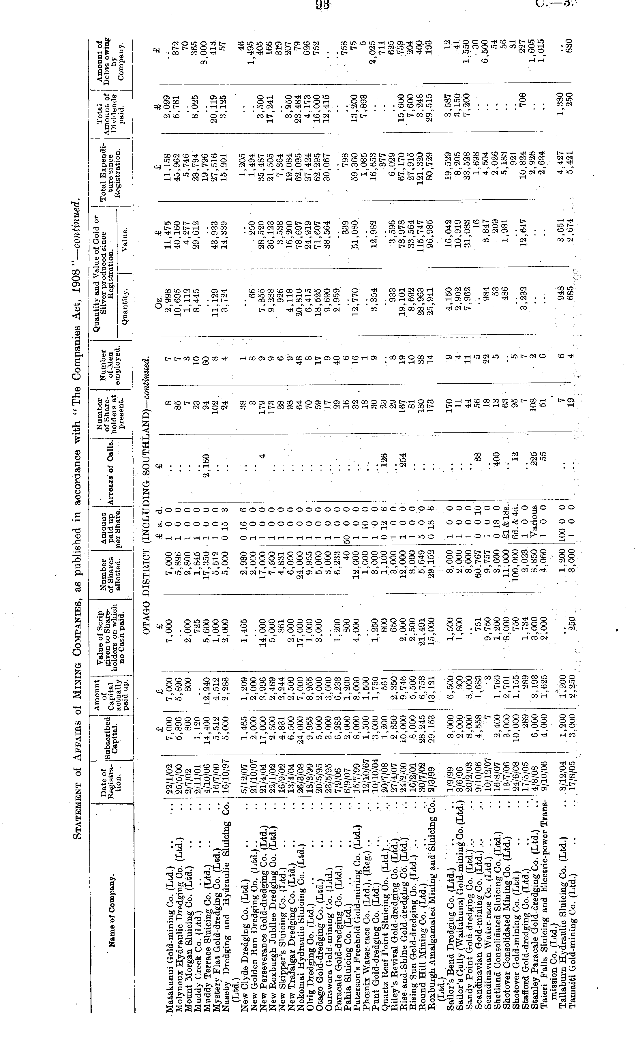 Statement of Affairs of Mining Companies, as published in accordance with " The Companies Act, 1908"— continued.