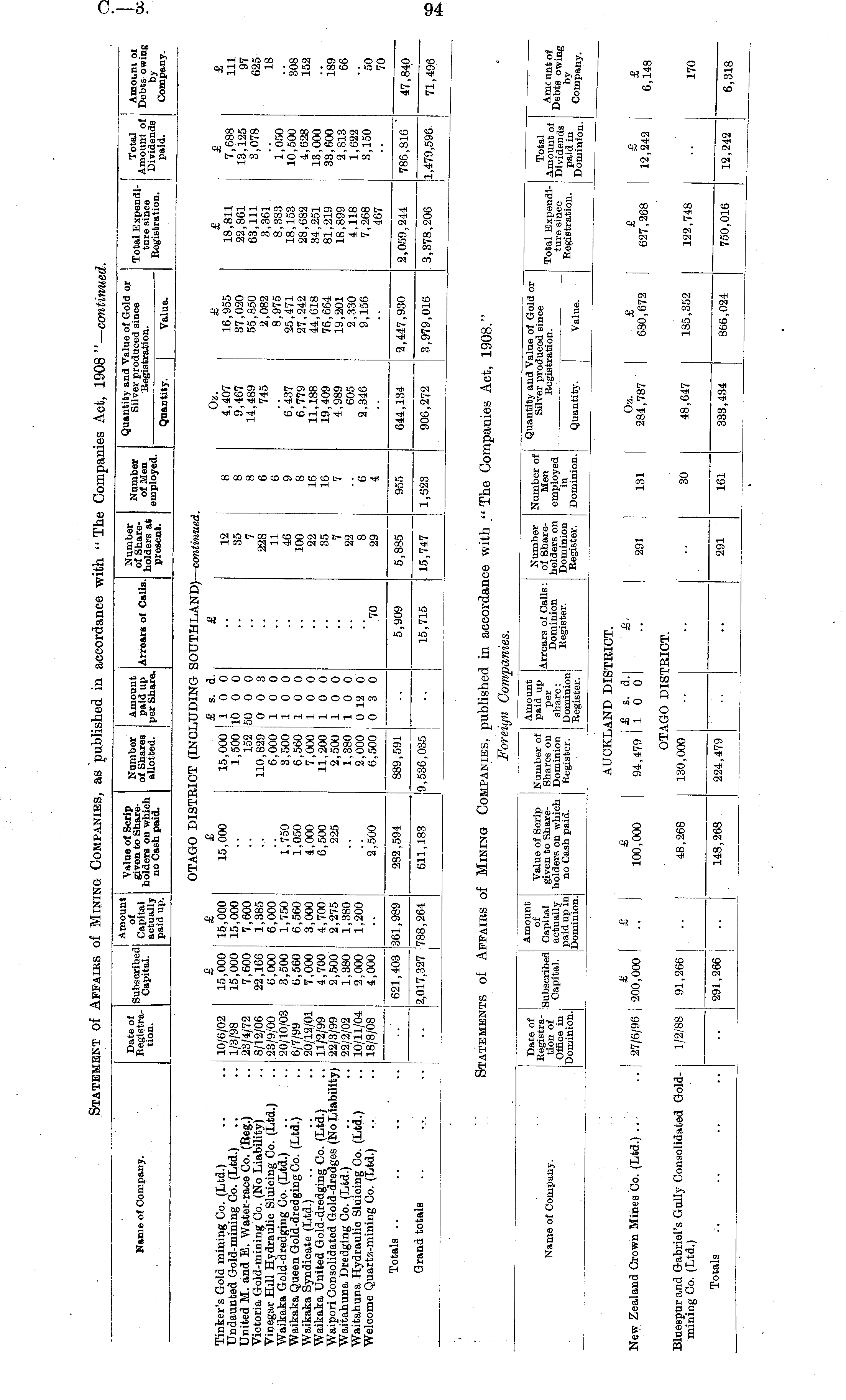 Statement of Affairs of Mining Companies, as published in accordance with "The Companies Act, 1908 "—continued.