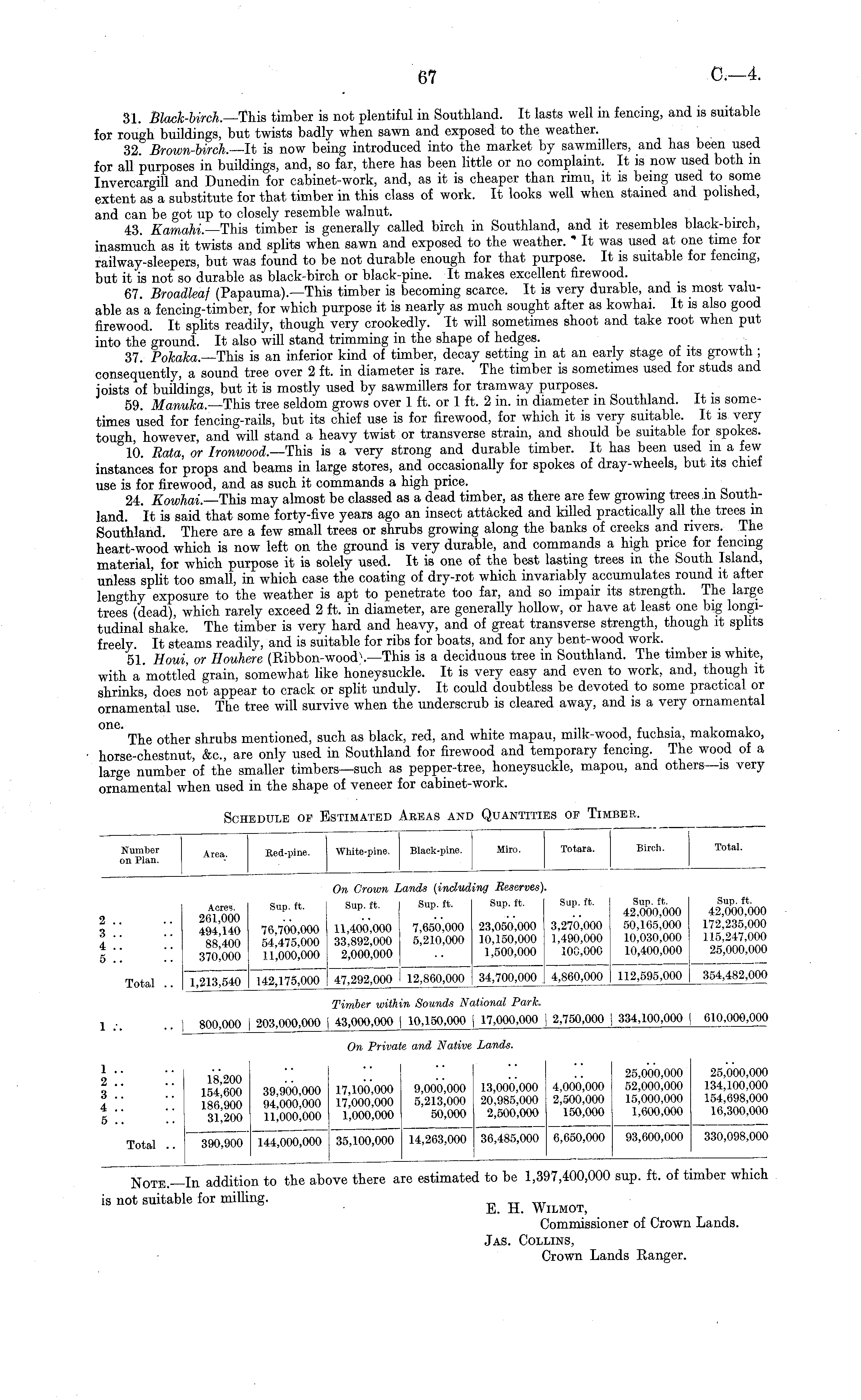 Note.—ln addition to the above there are estimated to be 1,397,400,000 sup. ft. of timber which is not suitable for miffing. r r Commissioner of Crown Lands. Jas. Collins, Crown Lands Ranger.