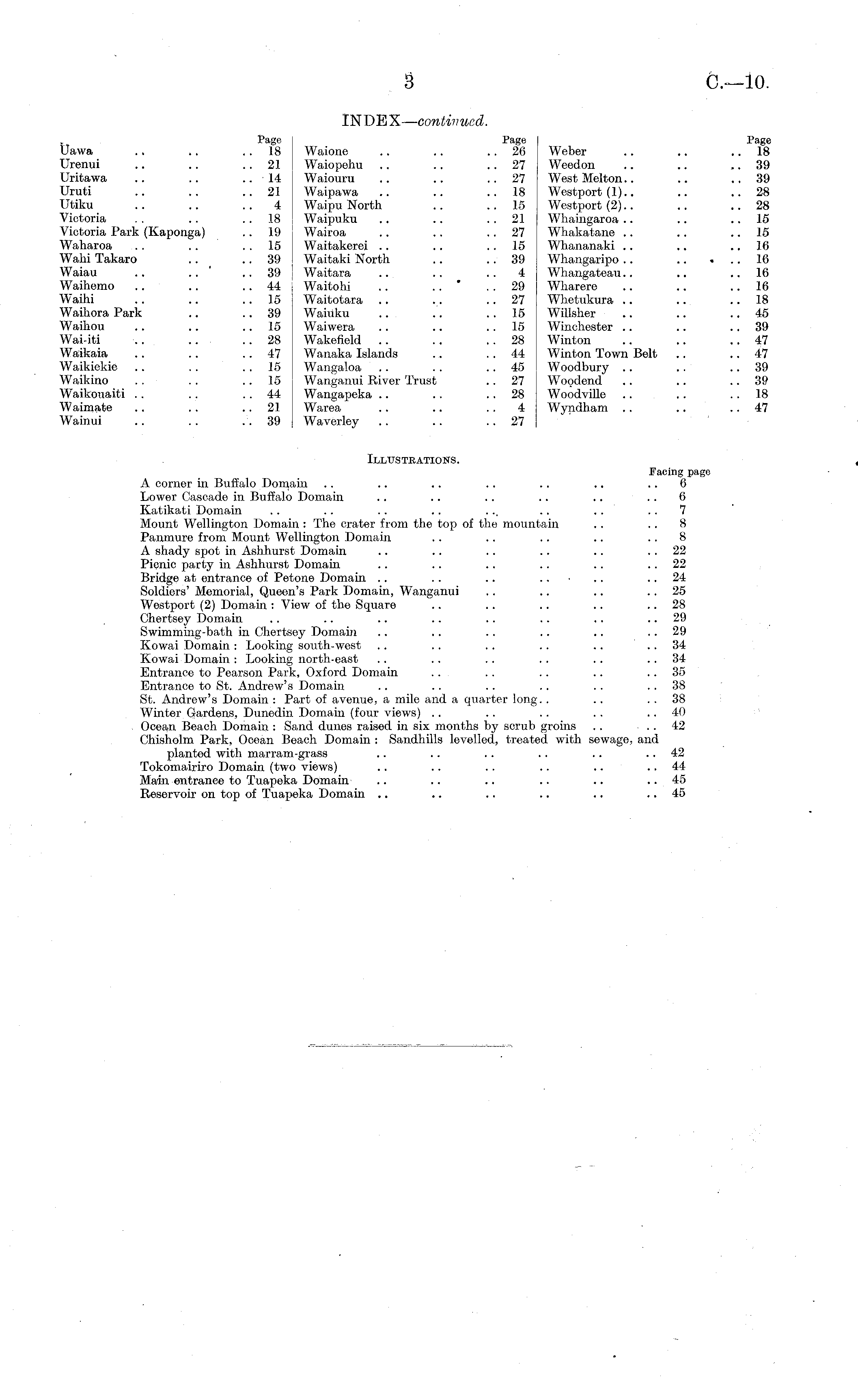 Page Weber .. .. .. 18 Weedon .. .. .. 39 West Melton.. .. ..39 Westport (1).. .. ..28 Westport (2).. .. .. 28 Whaingaroa .. .. 15 Whakatane .. .. 15 Whananaki .. .. 16 Whangaripo .. 16 Whangateau.. .. .. 16 Wharere .. .. .. 16 Whetukura .. .. .. 18 Willsher .. .. .. 45 Winchester .. .. .. 39 Winton .. .. .. 47 Winton Town Belt .. . . 47 Woodbury .. .. . . 39 W'oodend .. .. .. 39 Woodville .. .. . . 18 Wyndham .. .. .. 47