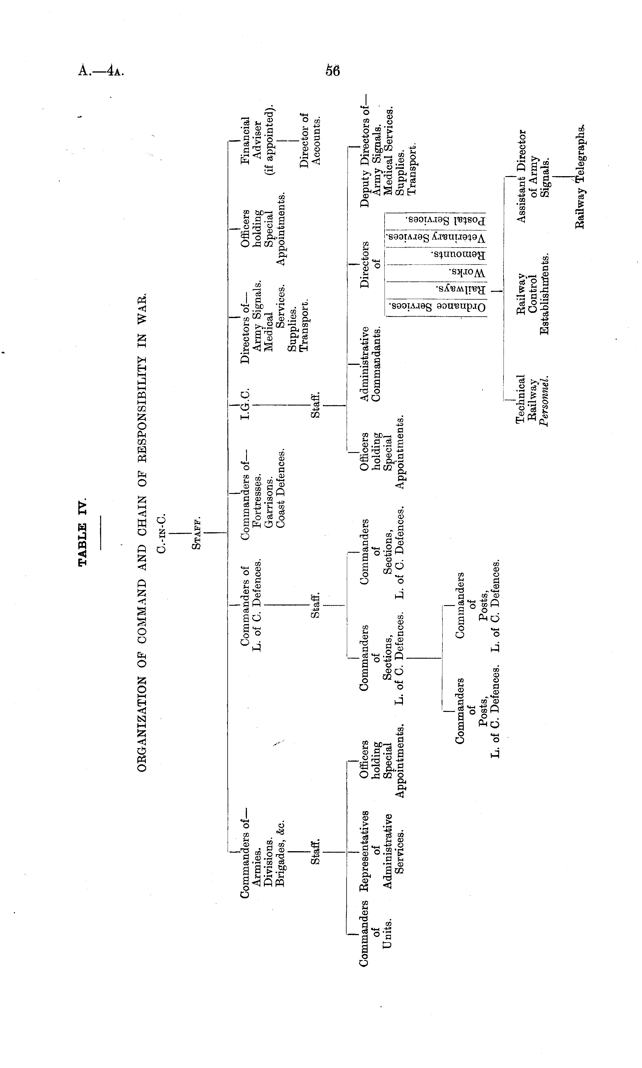 ORGANIZATION OF COMMAND AND CHAIN OF RESPONSIBILITY IN WAR, C.-IN-C. Staff. Commanders of— . Commanders of Commanders of— I.G.C. Directors of— Officers Financial Armies. L. of C. Defences. Fortresses. Army Signals. holding Adviser Divisions. Garrisons. Medical Special (if appointed). Brigades, &c. \ Coast Defences. Services. Appointments. Supplies. Transport. Director of Staff. Staff. Staff. Accounts. Commanders Representatives Officers Commanders Commanders Officers Administrative Directors Deputy Directors ofof of holding of of holding Commandants. of Army Signals. Units. Administrative Special Sections, Sections, Special — ~\ dT\ Medical Services. Services. Appointments. L. of C. Defences. L. of C. Defences. Appointments. § 8 1 Supplies. '> 't I g Transport. CD M > Commanders Commanders § & -g g '§ J of of 'H 3 I -S § Posts, Posts, ■ o tf t£|M f> PU L. of C. Defences. L. of C. Defences. | Technical Railway Assistant Director Railway Control of Army Personnel. Establishments. Signals. Railway Telegraphs*