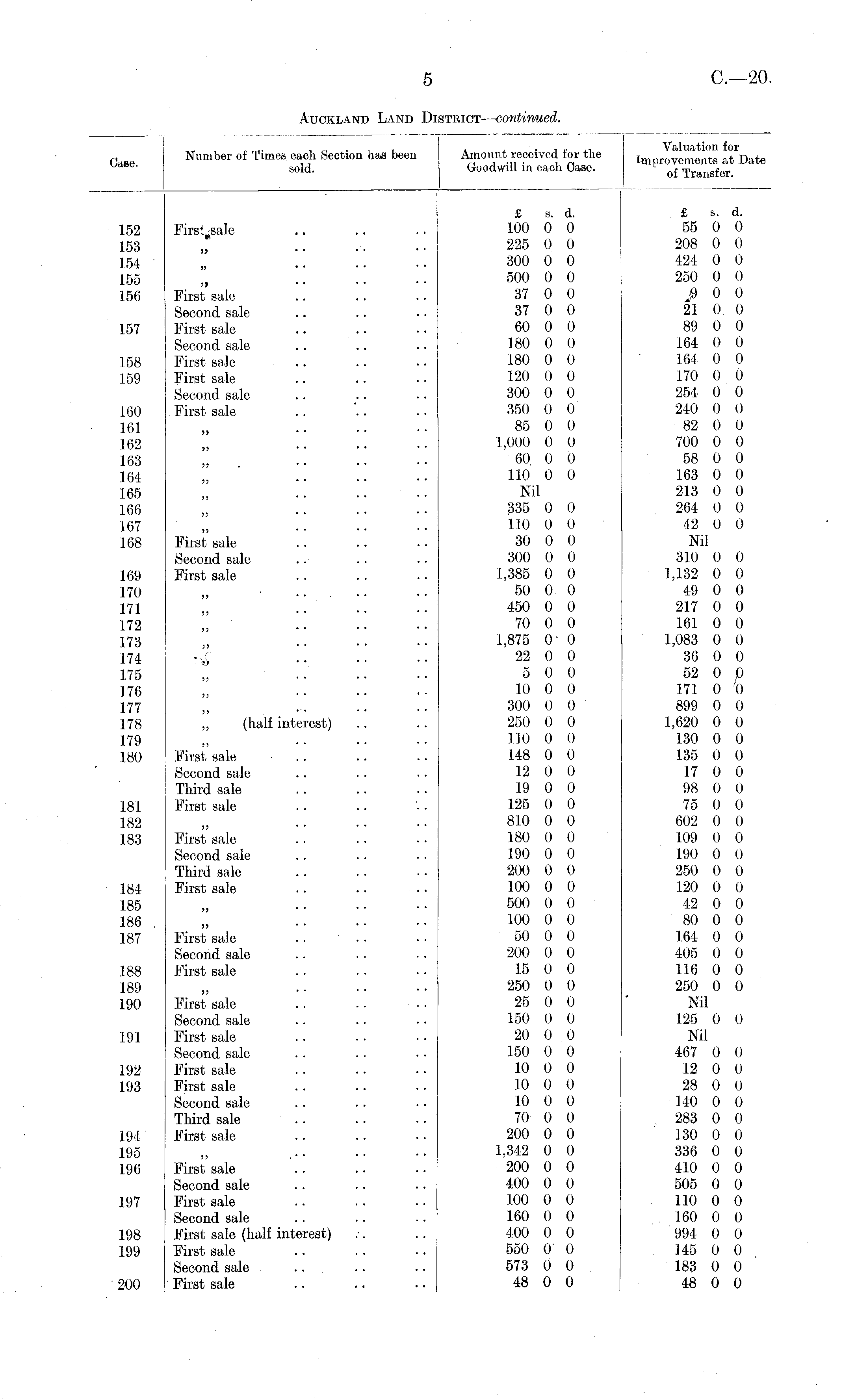 !ase. Number of Times each Section has been sold. Amount received for the Goodwill in each Case. Valuation for Improvements at Date of Transfer. 152 153 154 155 156 157 158 159 160 161 162 163 164 165 166 167 168 169 170 171 172 173 174 175 176 177 178 179 180 Firsi B saIe 39 ' • 33 • ' 39 * * First sale Second sale First sale Second sale First sale First sale Second sale First sale 33 * * 33 • • 33 • • 33 * * 33 • ■ 33 * * First sale Second sale First sale 33 ■ * 33 33 i> * " 33 ' ' 33 * * 33 „ (half interest) First sale Second sale Third sale First sale £ s. d. 100 0 0 225 0 0 300 0 0 500 0 0 37 0 0 37 0 0 60 0 0 180 0 0 180 0 0 120 0 0 300 0 0 350 0 0 85 0 0 1,000 0 0 60, 0 0 no o o Nil 335 0 0 110 0 0 30 0 0 300 0 0 1,385 0 0 50 0 0 450 0 0 70 0 0 1,875 0 0 22 0 0 5 0 0 10 0 0 300 0 0 250 0 0 110 0 0 148 0 0 12 0 0 19 0 0 125 0 0 810 0 0 180 0 0 190 0 0 200 0 0 100 0 0 500 0 0 100 0 0 50 0 0 200 0 0 15 0 0 250 0 0 25 0 0 150 0 0 20 0 0 150 0 0 "10 0 0 10 0 0 10 0 0 70 0 0 200 0 0 1,342 0 0 200 0 0 400 0 0 100 0 0 160 0 0 400 0 0 550 0' 0 573 0 0 48 0 0 £ s. d. 55 0 0 208 0 0 424 0 0 250 0 0 9 0 0 21 0 0 89 0 0 164 0 0 164 0 0 170 0 0 254 0 0 240 0 0 82 0 0 700 0 0 58 0 0 163 0 0 213 0 0 264 0 0 42 0 0 Nil 310 0 0 1,132 0 0 49 0 0 217 0 0 161 0 0 1,083 0 0 36 0 0 52 0 0 171 0 0 899 0 0 1,620 0 0 130 0 0 135 0 0 17 0 0 98 0 0 75 0 0 602 0 0 109 0 0 190 0 0 250 0 0 120 0 0 42 0 0 80 0 0 164 0 0 405 0 0 116 0 0 250 0 0 Nil 125 0 0 Nil 467 0 0 12 0 0 28 0 0 140 0 0 283 0 0 130 0 0 336 0 0 410 0 0 505 0 0 110 0 0 160 0 0 994 0 0 145 0 0 183 0 0 48 0 0 181 182 183 33 * * First sale Second sale Third sale First sale 184 185 186 . 187 33 " ' 33 ■ ■ First sale Second sale First sale 188 189 190 33 * ' First sale Second sale First sale Second sale First sale First sale Second sale Third sale First sale 191 192 193 194 195 196 33 * * First sale Second sale First sale Second sale First sale (half interest) First sale Second sale First sale 197 198 199 200
