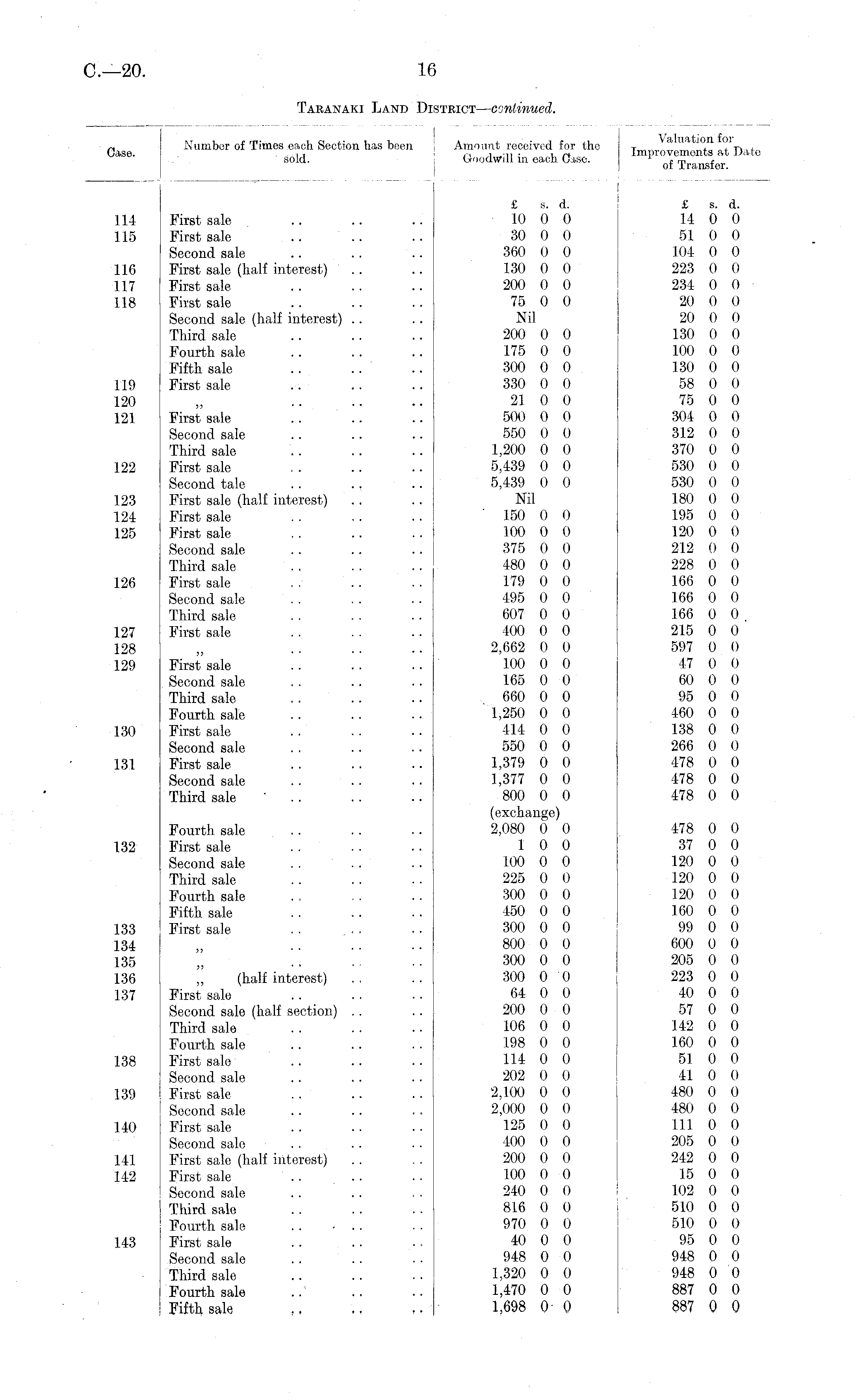 ;ase. Number of Times each Section has been sold. Amount received for the Goodwill in each Case. Valuation for Improvements at Dab of Transfer. 119 120 121 122 123 124 125 126 127 128 129 114 115 116 117 118 130 First sale First sale .. Second sale First sale (half interest) First sale First sale Second sale (half interest) Third sale Fourth sale Fifth sale First sale 33 * * - * ' ' First sale Second sale Third sale First sale Second tale . . . , First sale (half interest) First sale First sale Second sale Third sale First sale Second sale Third sale First sale 33 First sale Second sale Third sale Fourth sale First sale Second sale First sale Second sale .. Third sale £ s. d. 10 0 0 30 0 0 360 0 0 130 0 0 200 0 0 75 0 0 Nil 200 0 0 175 0 0 300 0 0 330 0 0 21 0 0 500 0 0 550 0 0 1,200 0 0 5,439 0 0 5,439 0 0 Nil 150 0 0 100 0 0 375 0 0 480 0 0 179 0 0 495 0 0 607 0 0 400 0 0 2,662 0 0 100 0 0 165 0 0 660 0 0 1,250 0 0 414 0 0 550 0 0 1,379 0 0 1,377 0 0 800 0 0 (exchange) 2,080 0 0 10 0 100 0 0 225 0 0 300 0 0 450 0 0 300 0 0 800 0 0 300 0 0 300 0 0 64 0 0 200 0 0 106 0 0 198 0 0 114 0 0 202 0 0 2,100 0 0 2,000 0 0 125 0 0 400 0 0 200 0 0 100 0 0 240 0 0 816 0 0 970 0 0 40 0 0 948 0 0 1,320 0 0 1,470 0 0 1,698 0 0 £ s. d. 14 0 0 51 0 0 104 0 0 223 0 0 234 0 0 20 0 0 20 0 0 130 0 0 100 0 0 130 0 0 58 0 0 75 0 0 304 0 0 312 0 0 370 0 0 530 0 0 530 0 0 180 0 0 195 0 0 120 0 0 212 0 0 228 0 0 166 0 0 166 0 0 166 0 0 215 0 0 597 0 0 47 0 0 60 0 0 95 0 0 460 0 0 138 0 0 266 0 0 478 0 0 478 0 0 478 0 0 131 132 Fourth sale First sale Second sale .. Third sale Fourth sale Fifth sale First sale . . ... 478 0 0 37 0 0 120 0 0 120 0 0 120 0 0 160 0 0 99 0 0 600 0 0 205 0 0 223 0 0 40 0 0 57 0 0 142 0 0 160 0 0 51 0 0 41 0 0 480 0 0 480 0 0 111 0 0 205 0 0 242 0 0 15 0 0 102 0 0 510 0 0 510 0 0 95 0 0 948 0 0 948 0 0 887 0 0 887 0 0 133 134 135 136 137 33 138 139 140 „ (half interest) First sale Second sale (half section) Third sale Fourth sale First sale Second sale First sale Second sale First sale Second salo First sale (half interest) First sale Second sale Third sale Fourth sale .. • . . First sale Second sale Third sale Fourth sale Fifth sale 141 142 143