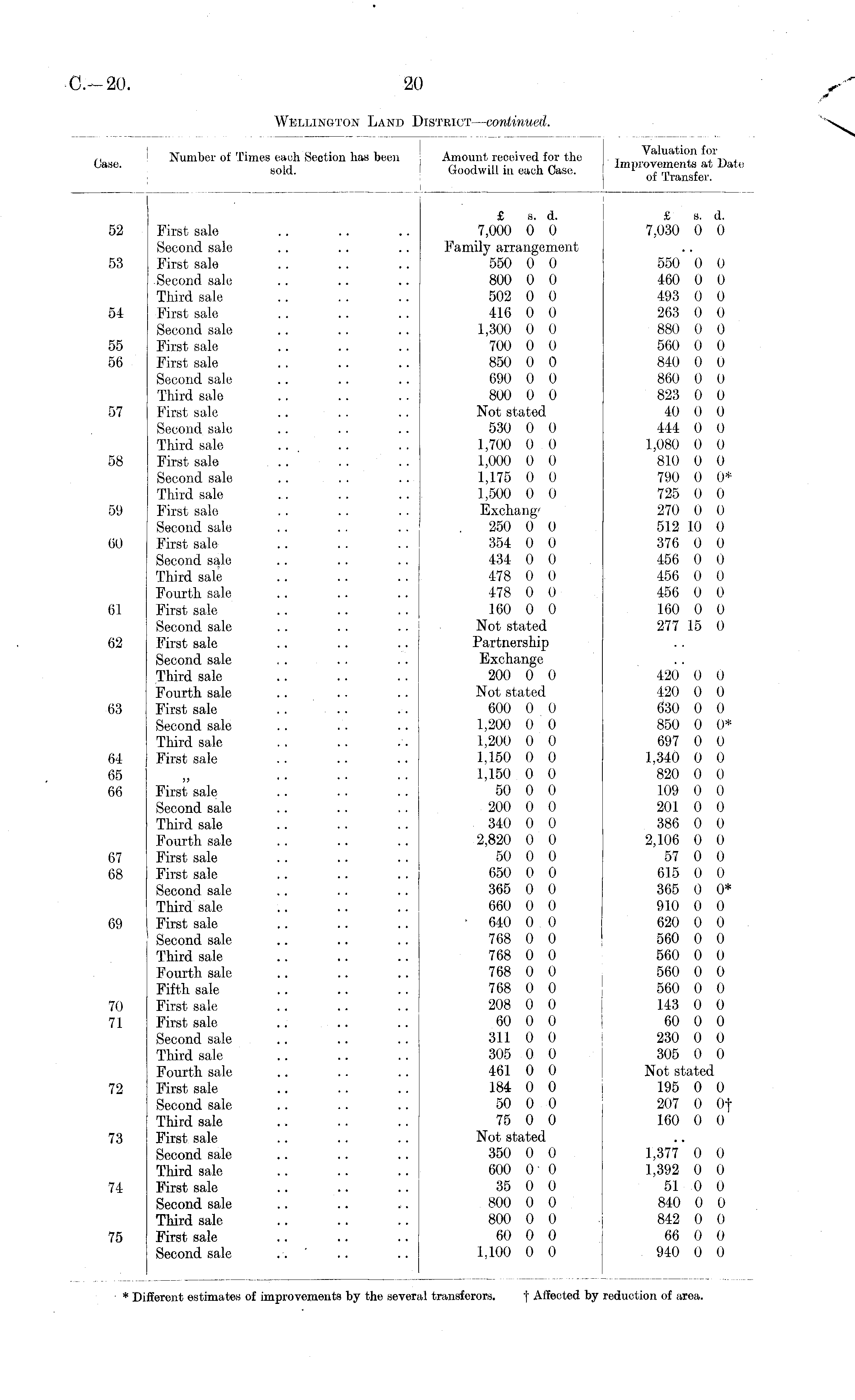Uase. Number of Times each Section has been sold. Amount received for the Goodwill in each Case. Valuation for Improvements at Dati of Transfer. 52 First sale Second salo First sale Second salo Third sale First sale Second salo First sale First sale Second sale Third sale First sale Second salo Third sale ... First sale Second sale Third sale First salo Second sale First sale Second salo Third sale Fourth sale First sale Second sale First sale Second sale Third sale Fourth sale First sale . . Second sale Third sale First sale £ s. d. 7,000 0 0 Family arrangement 550 0 0 800 0 0 502 0 0 416 0 0 1,300 0 0 700 0 0 850 0 0 690 0 0 800 0 0 Not stated 530 0 0 1,700 0 0 1,000 0 0 1,175 0 0 1,500 0 0 Exchang250 0 0 354 0 0 434 0 0 478 0 0 478 0 0 160 0 0 Not stated Partnership Exchange 200 0 0 Not stated 600 0 0 1,200 0 0 1,200 0 0 1,150 0 0 1,150 0 0 50 0 0 200 0 0 340 0 0 2,820 0 0 50 0 0 650 0 0 365 0 0 660 0 0 • 640 0 0 768 0 0 768 0 0 768 0 0 768 0 0 208 0 0 60 0 0 311 0 0 305 0 0 461 0 0 184 0 0 50 0 0 75 0 0 Not stated 350 0 0 600 0' 0 35 0 0 800 0 0 800 0 0 60 0 0 1,100 0 0 £ s. d. 7,030 0 0 53 550 0 0 460 0 0 493 0 0 263 0 0 880 0 0 560 0 0 840 0 0 860 0 0 823 0 0 40 0 0 444 0 O 1,080 0 0 810 0 0 790 0 0* 725 0 0 270 0 0 512 10 0 376 0 0 456 0 0 456 0 0 456 0 0 160 0 0 277 15 0 54 55 56 57 58 59 60 61 62 63 64 65 66 67 68 33 First sale Second sale Third sale Fourth sale First sale First sale Second sale Third sale First sale Second sale Third sale Fourth sale Fifth sale First sale First sale Second sale Third sale Fourth sale First sale Second sale Third sale First sale Second sale Third sale First sale Second sale Third sale First sale Second sale .-. . 420 0 0 420 0 0 630 0 0 850 0 0* 697 0 0 1,340 0 0 820 0 0 109 0 0 201 0 0 386 0 0 2,106 0 0 57 0 0 615 0 0 365 0 0* 910 0 0 620 0 0 560 0 0 560 0 0 560 0 0 560 0 0 143 0 0 60 0 0 230 0 0 305 0 0 Not stated 195 0 0 207 0 Of 160 0 0 69 70 71 72 73 1,377 0 0 1,392 0 0 51 0 0 840 0 0 842 0 0 66 0 0 940 0 0 74 75 - *Dii Eerent ostimatos of improvements by the seven ,1 transferors. f Affected by •eduction of area.