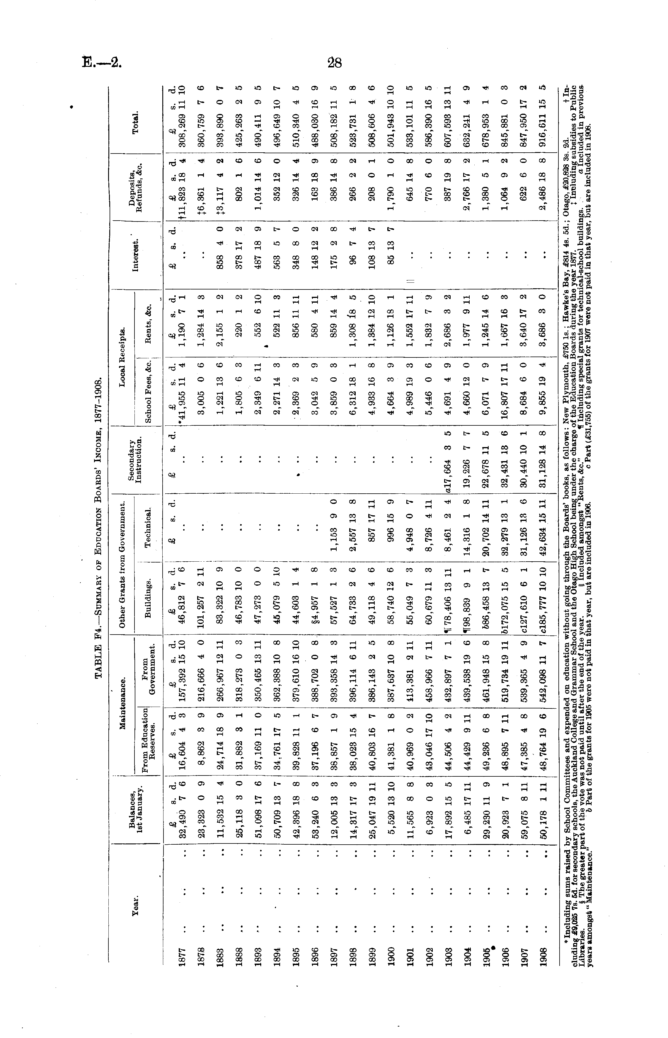 TABLE F4.—Summary of Education Boards' Income, 1877-1908.