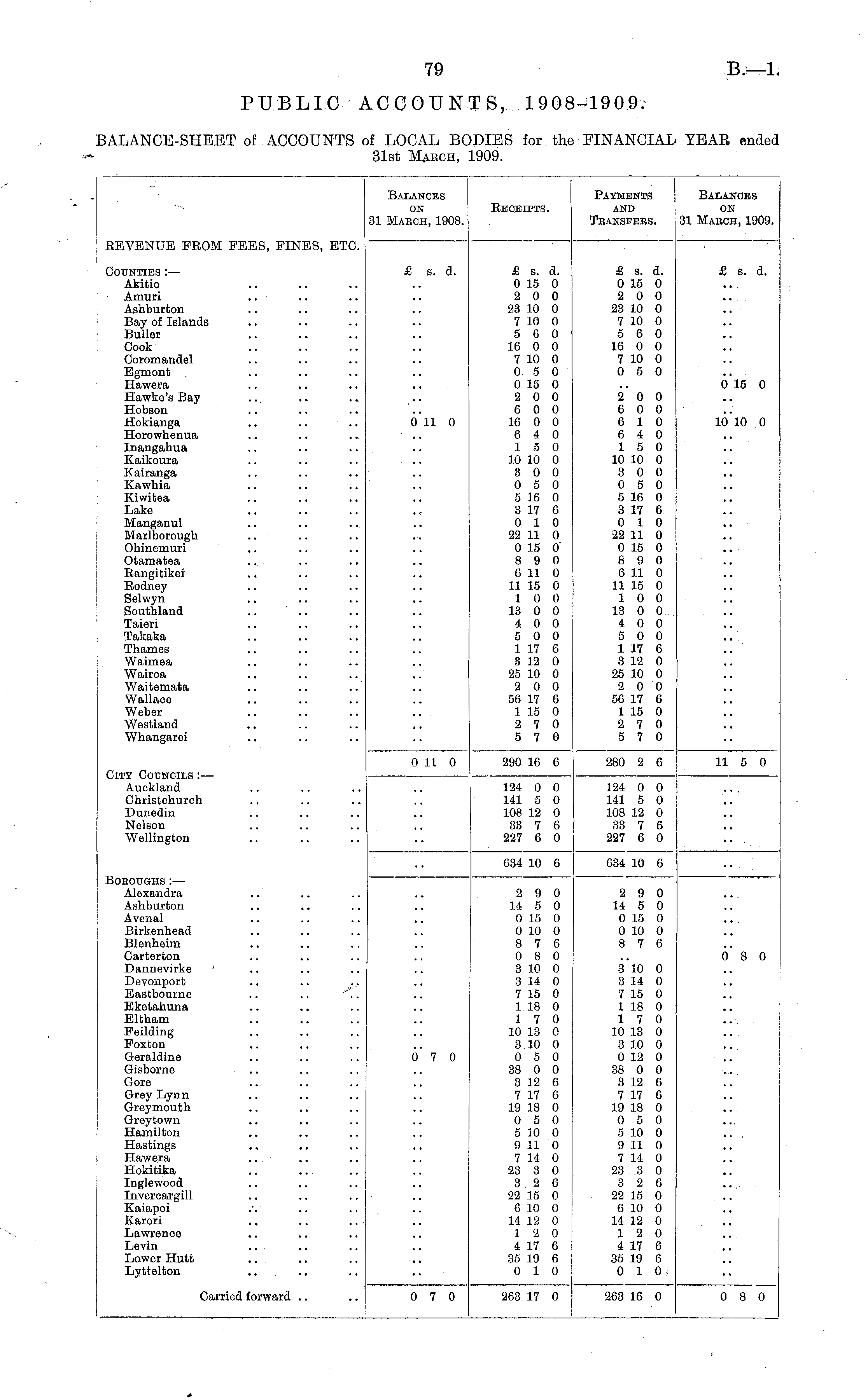 Balances on 31 Mabch, 1908. Receipts. Payments AND Tbansfees. Balances on 31 Mabch, 1909. REVENUE FROM FEES, FINES, ETC Counties :— Akitio Amuri Ashburton Bay of Islands Buller Cook Coromandel Egmont Hawera Hawke's Bay Hobson Hokianga .. .. • .. Horowhenua Inangahua Kaikoura Kairanga Kawhia Kiwitea Lake Manganui Marlborough Ohinemuri Otamatea Rangitikei Rodney Selwyn Southland Taieri Takaka Thames Waimea Wairoa Waitemata Wallace Weber Westland Whangarei £ s. d. 6 ii o £ s. d. 0 15 0 2 0 0 23 10 0 7 10 0 5 6 0 16 0 0 7 10 0 0 5 0 0 15 0 2 0 0 6 0 0 16 0 0 6 4 0 15 0 10 10 0 3 0 0 0 5 0 5 16 0 3 17 6 0 10 22 11 0 0 15 0 8 9 0 6 11 0 11 15 0 10 0 13 0 0 4 0 0 5 0 0 1 17 6 3 12 0 25 10 0 2 0 0 56 17 6 1 15 0 2 7 0 5 7 0 £ s. d. 0 15 0 2 0 0 23 10 0 7 10 0 5 6 0 16 0 0 7 10 0 0 5 0 2 0 0 6 0 0 6 10 6 4 0 15 0 10 10 0 3 0 0 0 5 0 5 16 0 3 17 6 0 10 22 11 0 0 15 0 8 9 0 6 11 0 11 15 0 10 0 13 0 0 4 0 0 5 0 0 1 17 6 3 12 0 25 10 0 2 0 0 56 17 6 1 15 0 2 7 0 5 7 0 £ s. d. 015 0 io'io 0 City Councils :— Auckland Christohurch Dunedin Nelson Wellington 0 11 0 290 16 6 124 0 0 141 5 0 108 12 0 33 7 6 227 6 0 280 2 6 124 0 0 141 5 0 108 12 0 33 7 6 227 6 0 11 5 0 Boroughs :— Alexandra Ashburton Avenal Birkenhead Blenheim Carterton Dannevirke ..., Devonport Eastbourne Eketahuna Eltham Feilding Foxton Geraldine Gisborne Gore Grey Lynn Greymouth Greytown Hamilton Hastings Hawera Hokitika Inglewood Invercargill Kaiapoi Karori Lawrence Levin Lower Hutt Lyttelton 634 10 6 634 10 6 2 9 0 14 5 0 0 15 0 0 10 0 8 7 6 0 8 0 3 10 0 3 14 0 7 15 0 1 18 0 1 7 0 10 13 0 3 10 0 0 5 0 38 0 0 3 12 6 7 17 6 19 18 0 0 5 0 5 10 0 9 11 0 7 14 0 23 3 0 3 2 6 22 15 0 6 10 0 14 12 0 12 0 4 17 6 35 19 6 0 10 2 9 0 14 5 0 0 15 0 0 10 0 8 7 6 08 0 6' 7 0 3 10 0 3 14 0 7 15 0 1 18 0 17 0 10 13 0 3 10 0 0 12 0 38 0 0 3 12 6 7 17 6 19 18 0 0 5 0 5 10 0 9 11 0 7 14 0 23 3 0 3 2 6 22 15 0 6 10 0 14 12 0 12 0 4 17 6 35 19 6 0 10 Carried forward .. 0 7 0 263 17 0 263 16 0 0 8 0