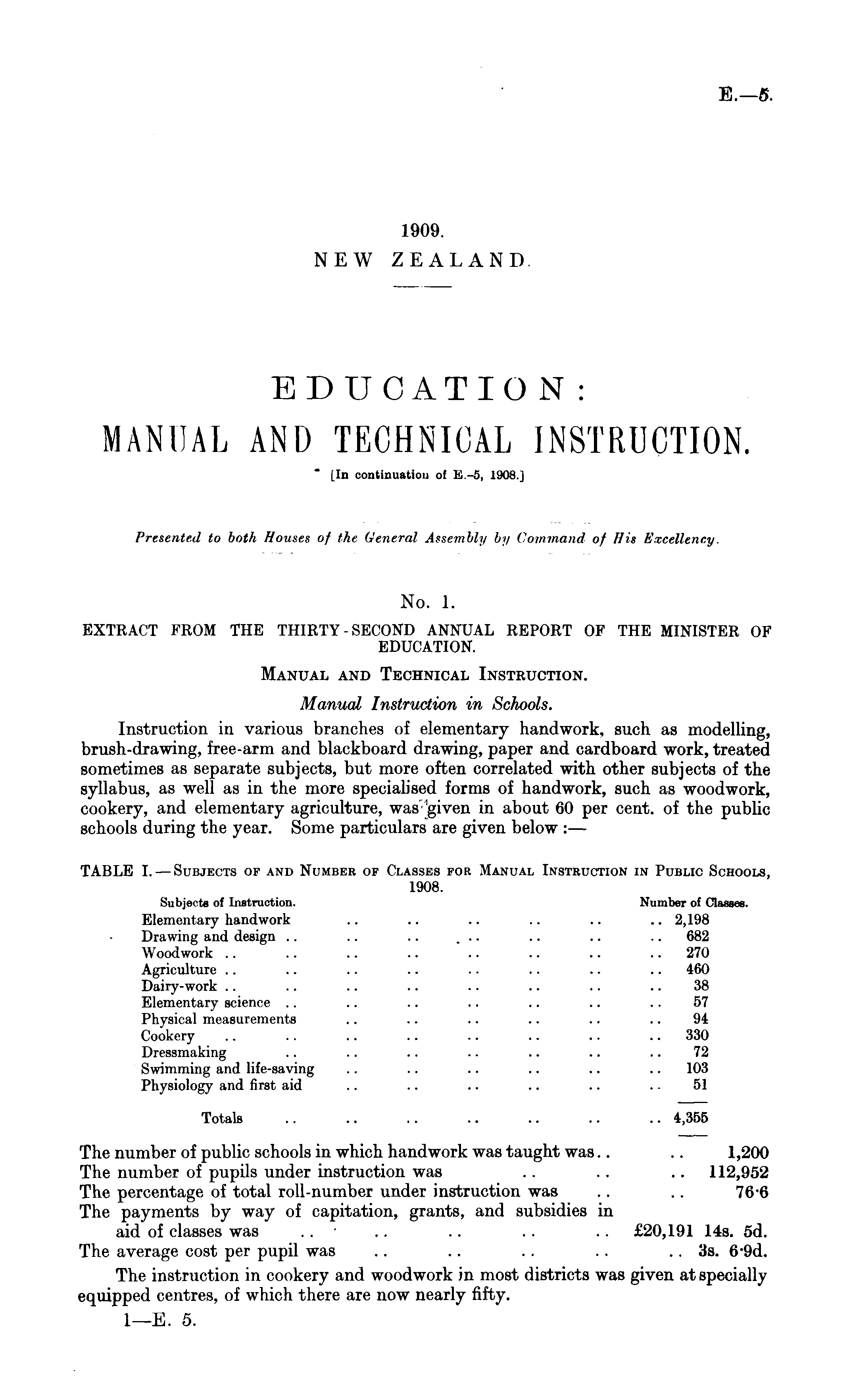 EDUCATION: MANUAL AND TECHNICAL INSTRUCTION. [In continuation of E.-5, 1908.]
