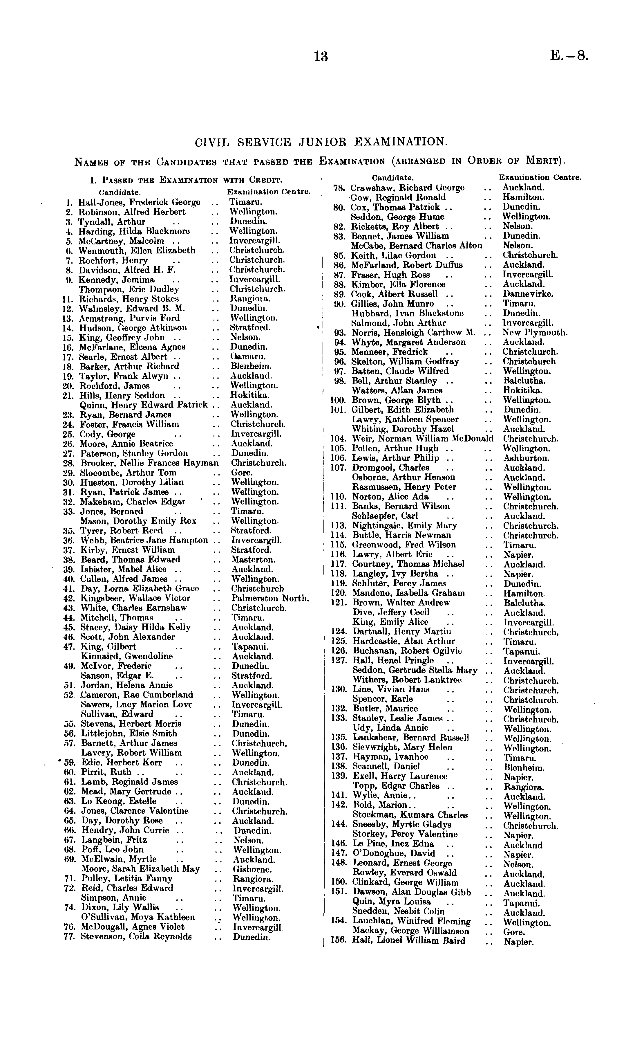 Candidate. Examination Centre. 78. Crawahaw, Riohard George .. Auckland. Qow, Reginald Ronald .. Hamilton. 80. Cox, Thomas Patrick .. .. Dimcdiu. Seddon, George Hume .. Wellington. 82. Ricketts, Roy Albert .. .. Nelson. 83. Bennet, James William .. Dunedin. MoCabe, Bernard Charles Alton Nelson. 85. Keith, Lilac Gordon .. .. Christcliurch. 86. MeFarland. Robert Duffus .. Auckland. 87. Fraser, Hugh Ross .. .. Invercargill. 88. Kimber, Ella Florence .. Auckland. 89. Cook, Albert Russell .. .. Danncvirke. 90. Gillies, John Munro .. .. Timaru. Hubbard, Ivan Blaekstonc, .. Dunedin. Salmond, John Arthur .. Invercargill. 93. Norris, Hensleigh Carthew M. .. New Plymouth. 94 Whyte, Margaret Anderson .. Auckland. 95. Menneer, Fredrick .. .. Christohuroh. Bβ. Skelton. William Godfray .. Christehurch !)7. Batten, Claude Wilfred .. Wellington. 98. Bell, Arthur Stanley .. .. Balclutha. Watters, Allan James .. Hokitika. 100. Brown, George Blyth .. .. Wellington. 101. Gilbert, Edith Elizabeth .. Dunedin. Lawry, Kathleen S|iencer .. Wellington. Whiting, Dorothy Hazel .. Auckland. 104. Weir. Norman William McDonald Christcliutvh. 105. Pollen, Arthur Hugh . . . . Wellington. 106. Lewis, Arthur Philip .. .. Ashburton. 107. Dromgool, Charles .. .. Auckland. Olboroe, Arthur Henson .. Auckland. Rasmussen, Henry Peter .. Wellington. 110. Norton, Alice Ada .. .. Wellington. 111. Banks, Bernard Wilson .. Christeliureli. Sohlaepfer, Carl .. .. Auckland. 113. Nightingale, Emily Mary .. Christehureh. 114. Buttle, Harris Newman .. Christchurch. 115. Greenwood, flred Wilson .. Timam. 116. Lawry, Albert Eric .. .. Napier. 117. Courtney, Thomas Michael .. Auckland. 118. Langley, Ivy Bertha .. .. Napier. 119. Schluter, Percy James .. Dunedin. IL'O. Mandeno, Isabella Graham .. Hamilton. 121. Brown, Walter Andrew .. Balclutha. Dive, Jeflery CeoO .. .. Auckland. King, Emih Alice .. .. Invercargill. 124. Dartnall. Henry .Martin . Christchurch. 125. Hardcastle, Alan Arthur .. Timaru. 126. Buchanan, Robert Ogilvio .. Tapanui. 127. Hall. Henel Pringle .. .. Invercargill. Seddon, Gertrude Stella Mary .. Auckland. Withers, Robert Lanktree .. Christehureh. 130. Line, Vivian Hans .. .. Christeliureli. Saucer, Earle .. .. Christchurch. 132. Butler. .Maurice .. .. Wellington. 133. Stanley, Leslie James .. .. Christchurch. Udy, Linda Annio .. .. Wellington. 135. Lankshcar, Bernard Russell .. Wellington. 136. Sievwright, Mary Helen .. Wellington. 137. Hayman, Ivanhoe .. .. Timaru. 138. Seannell. Daniel .. .. Blenheim. 139. Exell, Harry Laurence .. Napier. Topp, Edgar Charles .. .. Rangiora. 141. Wylie, Annie.. .. .. Auckland. 142. Bold, Marion.. .. .. Wellington. Stockman, Kumara Charles .. Wellington. 144. Sueosby, Myrtle Gladys .. Christchurch. Storkey. Percy Valentino .. Napier. I4(i. Iα- Pine, Inez Edna .. .. Auckland 147. O'Donoghue, David .. .. Napier. 148. Leonard, Ernest George .. Nolson. Rowley, Everard Oswald .. Auckland. 150. dinkard, George William .. Auckland. 151. Dawson, Alan Douglas Gibb .. Auckland. Quin, Myra Louisa .. .. Tapanui. Sneddon, Nesbit Colin .. Auckland. 154. Lauchlan, Winifred Fleming .. Wellington. Mackay, George Williamson .. Gore. 156. Hall, Lionel William Baird .. Napier.