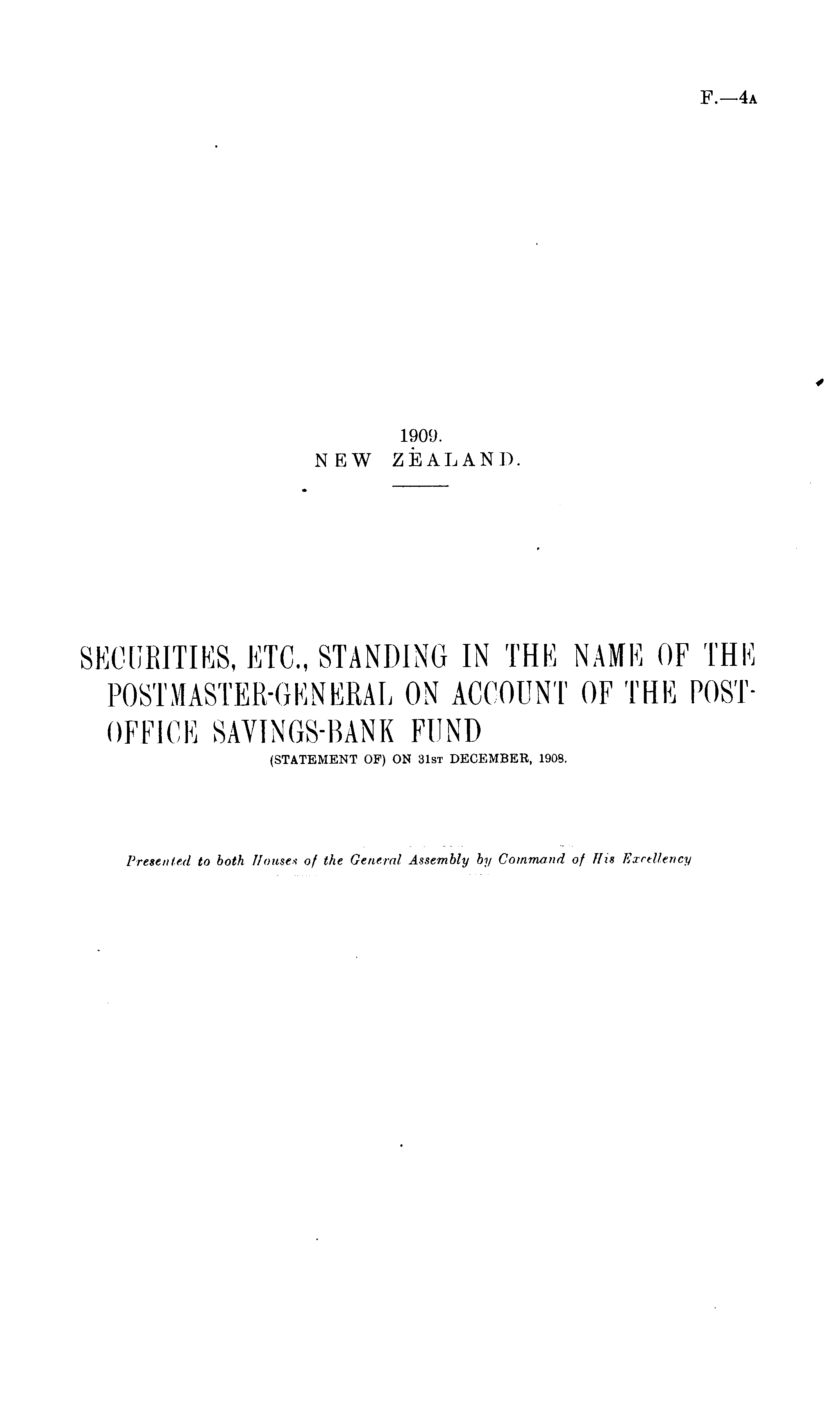 SECURITIES, ETC., STANDING IN THE NAME OF THE POSTMASTER-GENERAL ON ACCOUNT OF THE POSTOFFICE SAVINGS-BANK FUND (STATEMENT OF) ON 31st DECEMBER, 1908.